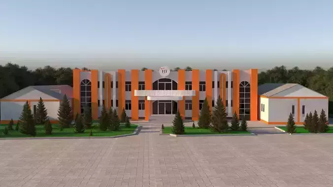 building orange house surrounded 3D model
