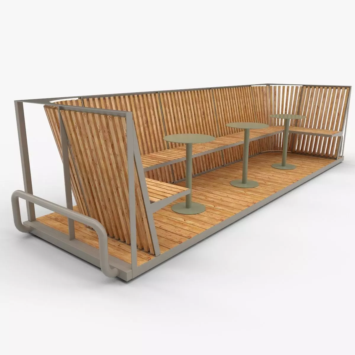 Modular city park platform, made from coated steel and wooden planks. 4k PBR and UHDRP textures.