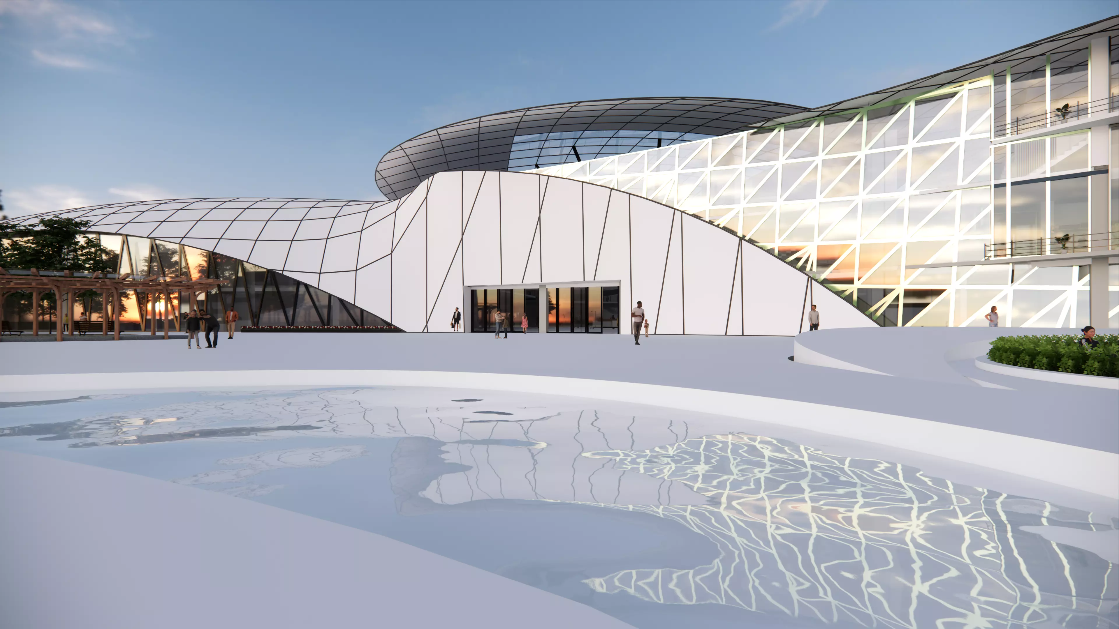 - Landscape and Urban Integration: Green zones, water bodies, public seating, and sculptural terrain integrated into site topography.