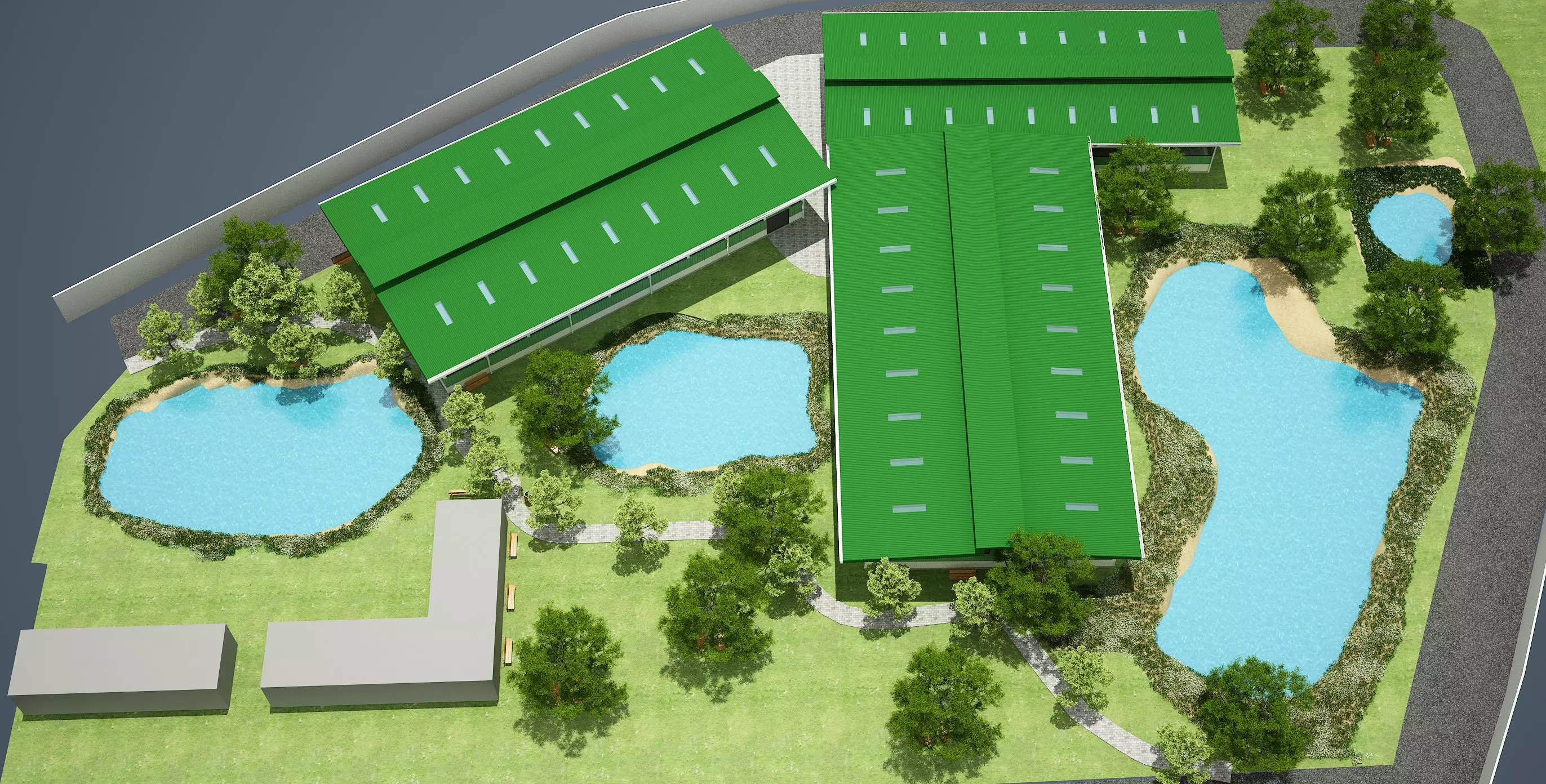FACTORY WITH GARDEN Low-poly 3D model