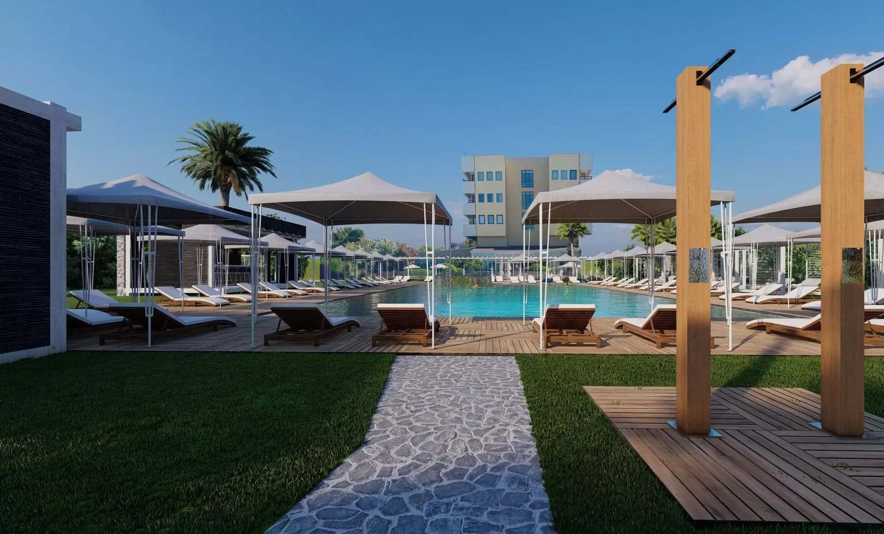 To keep guests cool and comfortable, the pool area is equipped with sunshades that can be easily adjusted to provide just the right amount of shade. And for those who prefer to soak up the sun, the model includes plenty of open space for lounging and sunbathing.