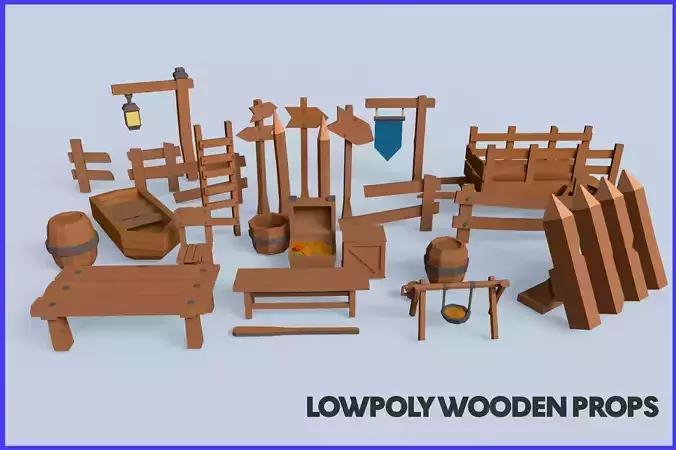 LOW POLY WOODEN PROPS Low-poly 3D model