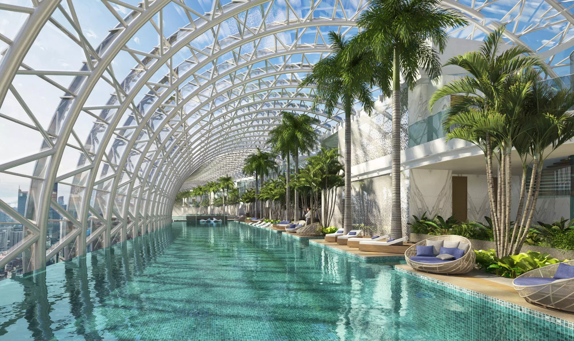 Luxury Rooftop Glass Atrium Pool with Tropical Lounge 3D model
