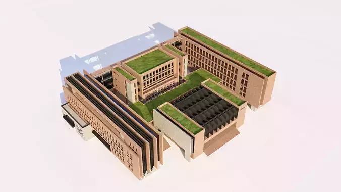 This is a premium 3D model of a Modern Educational Facility, designed to represent the future of sustainable institutional architecture. The model features a unique integrated roof garden, blending functional academic spaces with environmental design for realistic architectural visualizations (Arch-Viz).