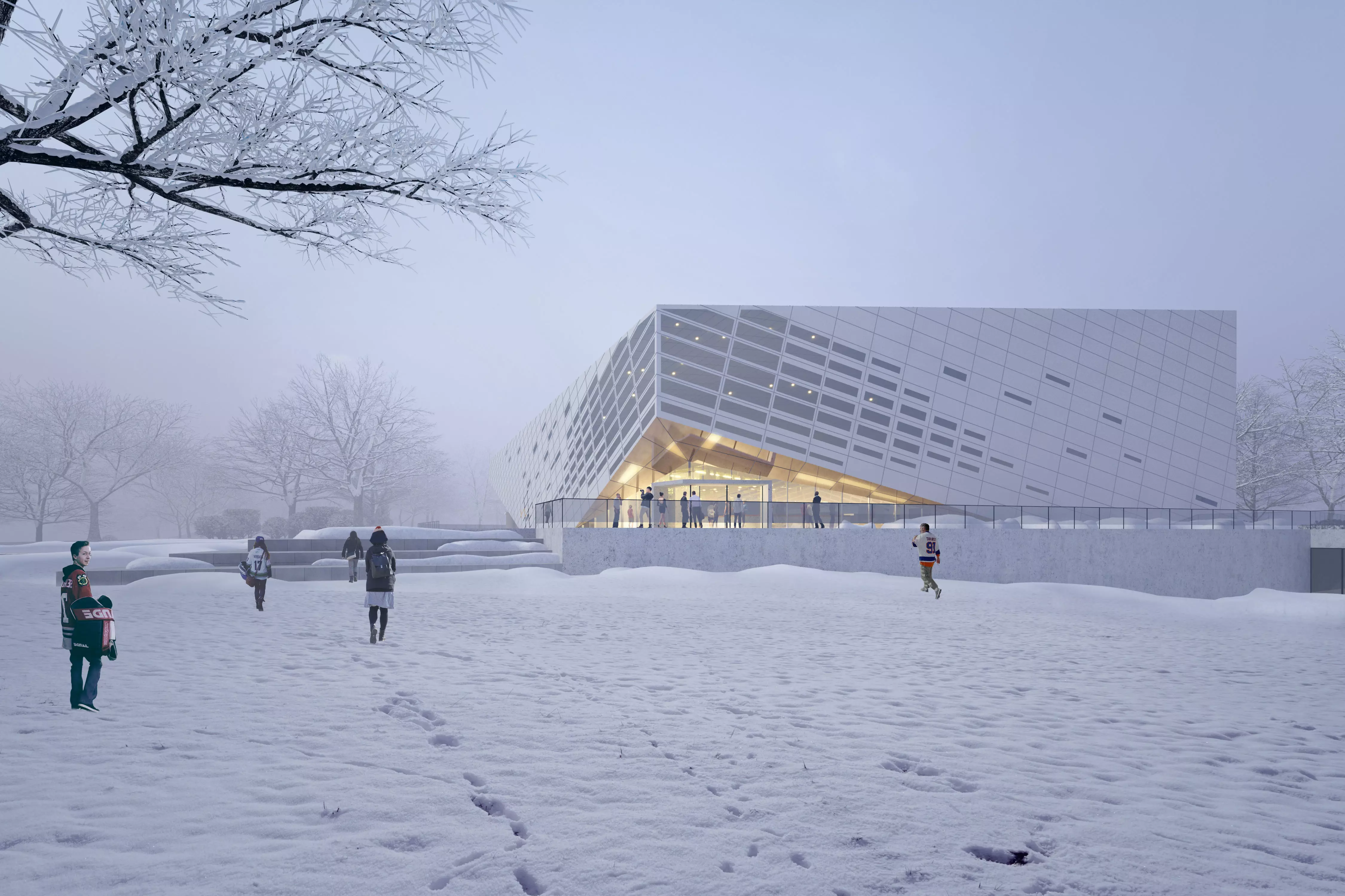 Modern Winter Public Building Exterior with Minimalist Pavilion 3D model