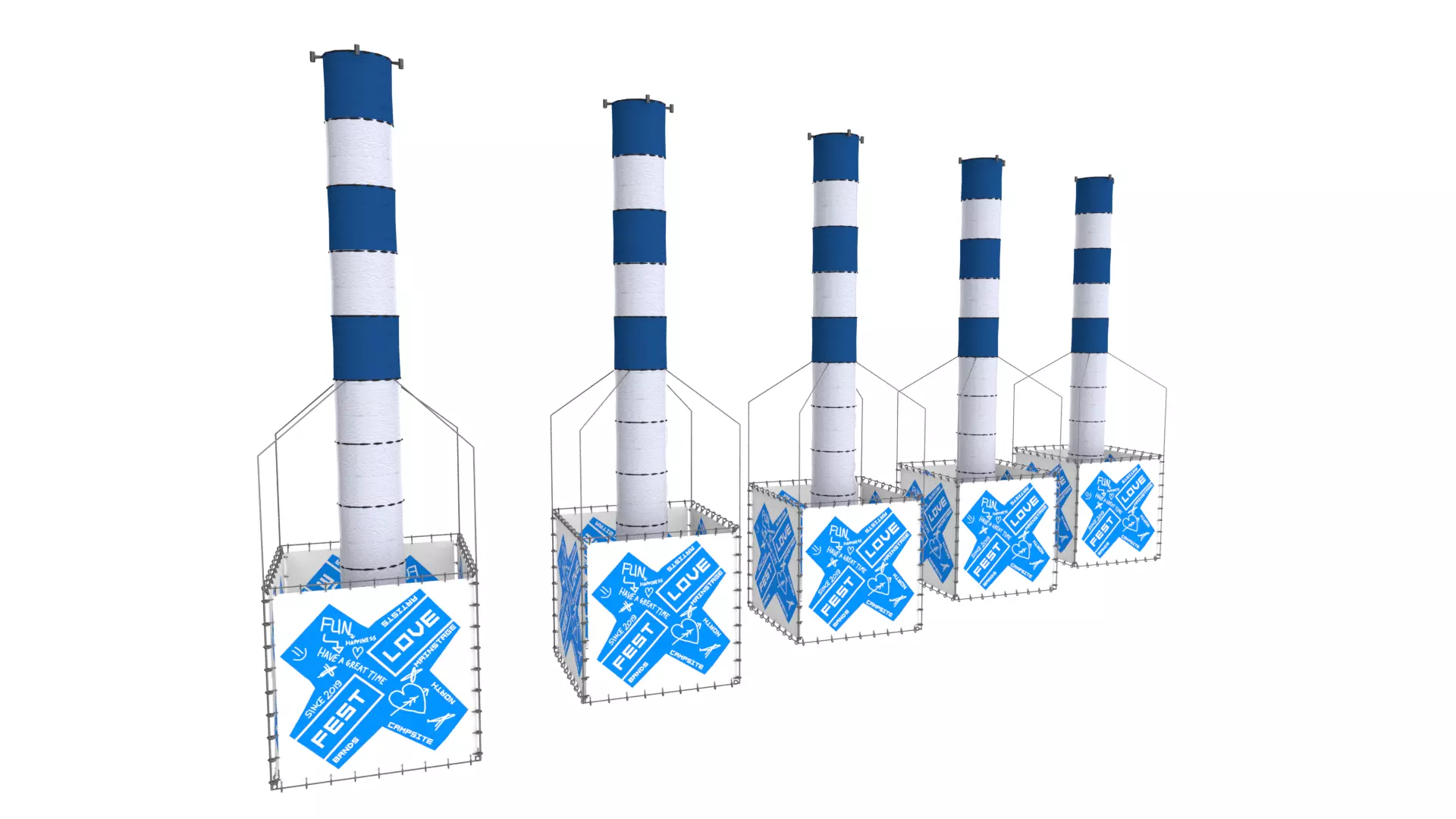 This festival banner is created in Cinema 4D R19 with Octane Render 4. The festival banner is modular so you can decide how many polygons you need to use for your scene. Textures and materials are included.