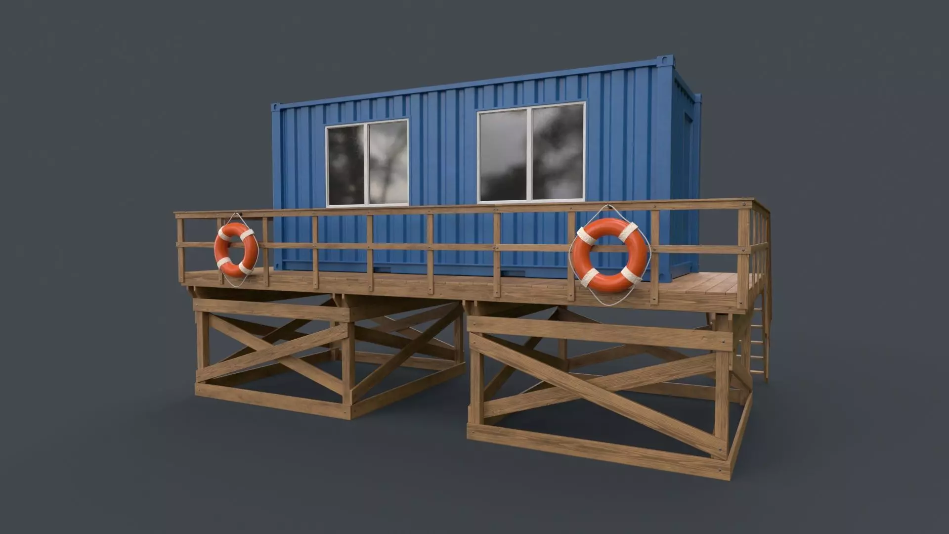 PBR Outdoor Beach Lifeguard Container Office Low-poly 3D model