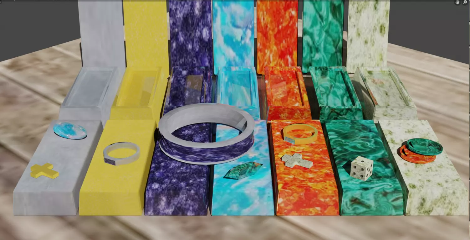The model has material settings that define how surfaces look (color, shine, transparency, etc.).