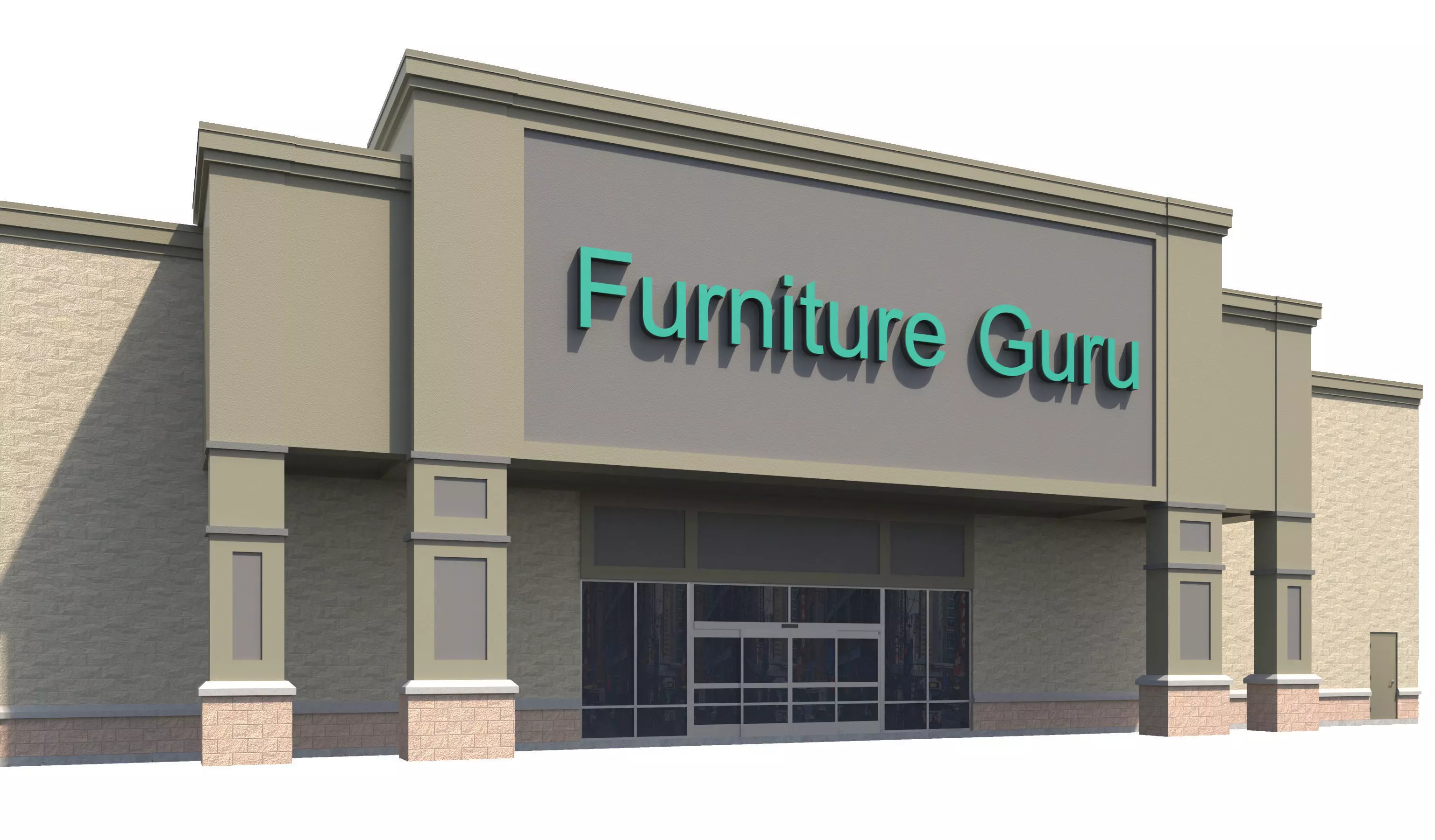 High Detail 3D Exterior Model of a Retail Store: Currently labeled as a Furniture Store but any signage can be placed on building