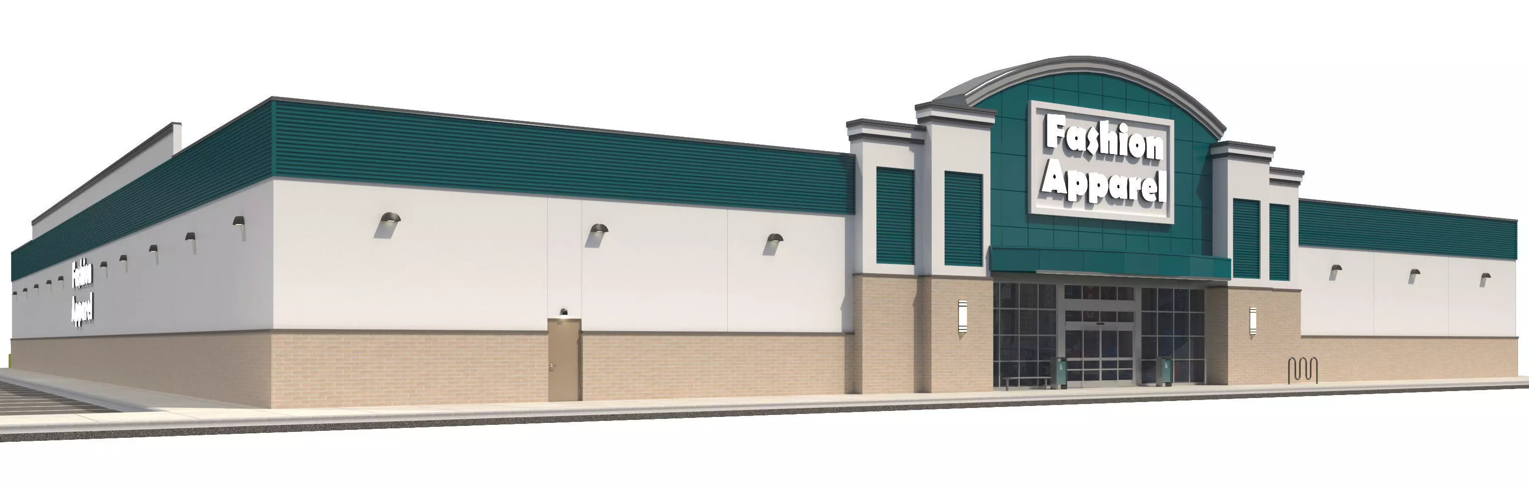 High Detail 3D Exterior Model of a Retail Store: Currently has signage for a generic Fashion store, commercial department store