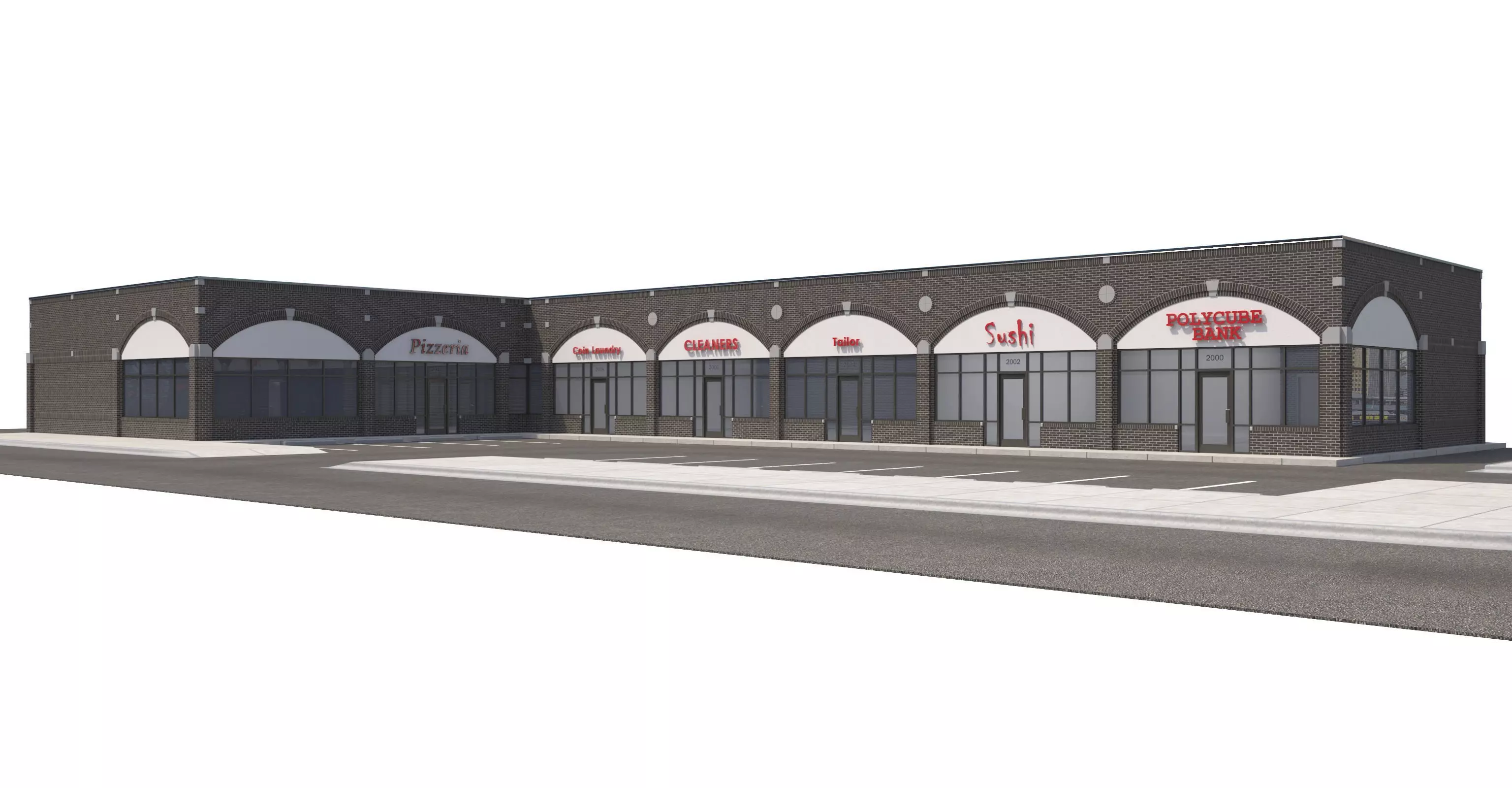 -3D model of a strip mall/outdoor Mall with tenants as shown in renderings