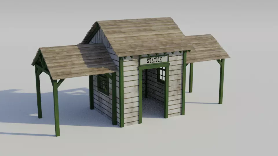 Western Train Station - Low-poly PBR Low-poly 3D model