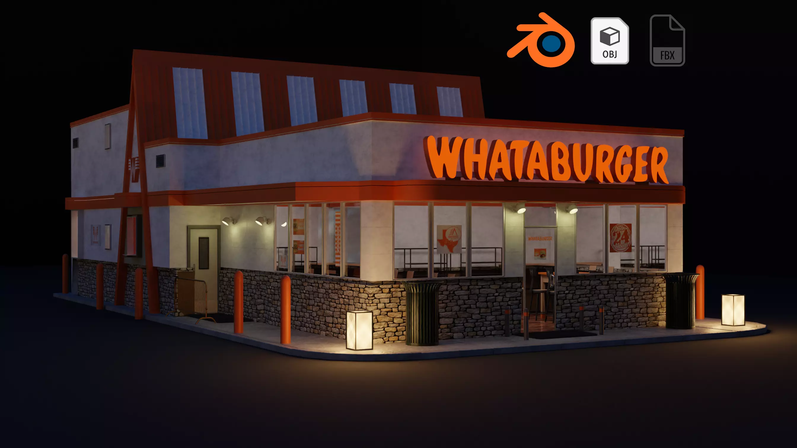 Whataburger Restaurant. I modeled the whole exterior interior is medium poly, if you have any questions, let me know!.... ALL SALES ARE FINAL, No Return BackInstagram @nadim.obaji
