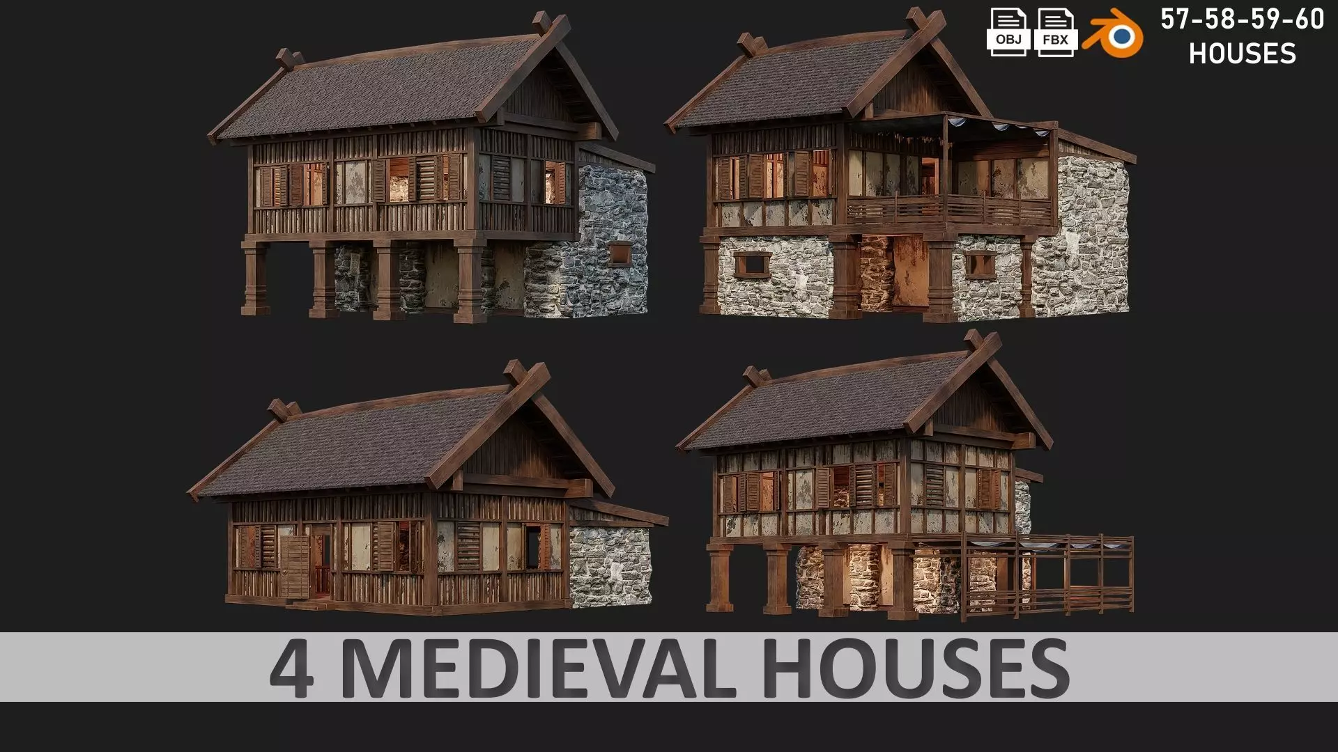 4 Old Medieval Building House Pack 4K Textures GameReady 57-58-59-60