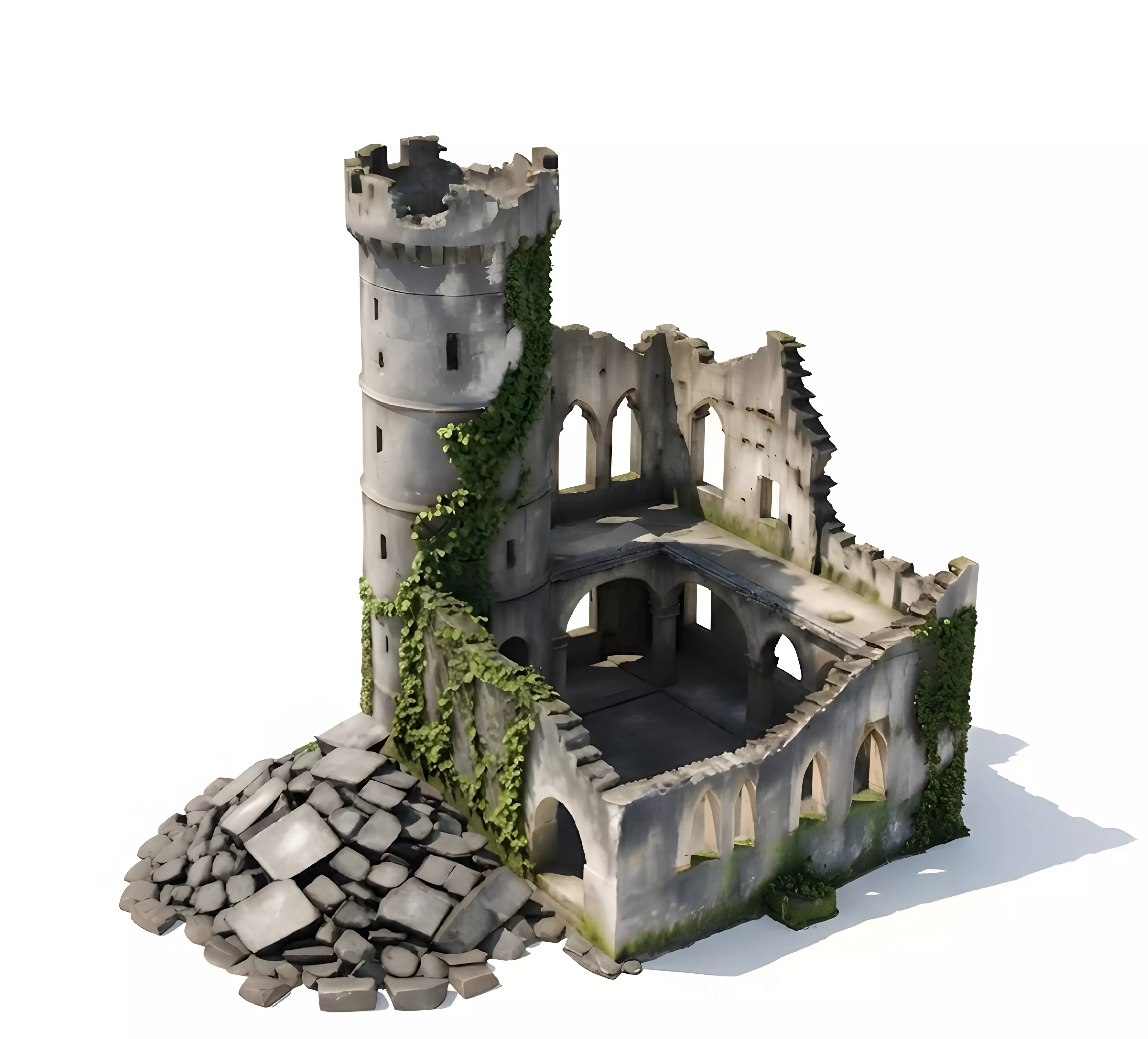 The Overall Concept This asset is a destroyed section of an ancient stone castle. It represents a forgotten fortress that has been abandoned for centuries, making it a perfect set piece for fantasy adventures or historical battlegrounds.