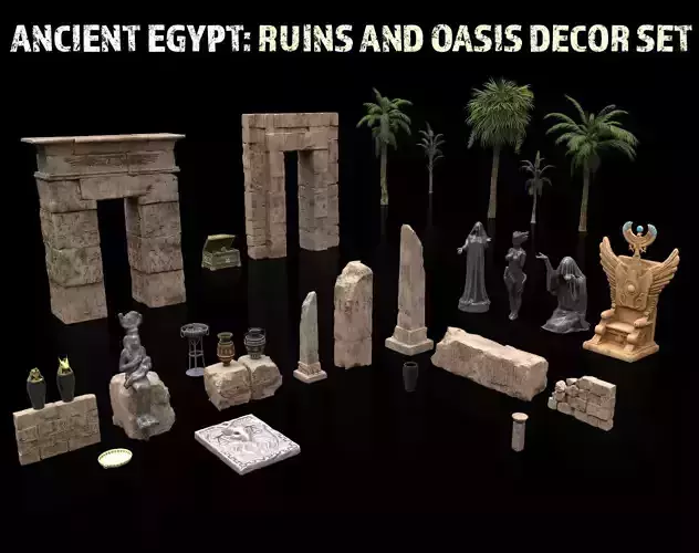 Ancient Egypt Ruins and Oasis Decor Set 3D model