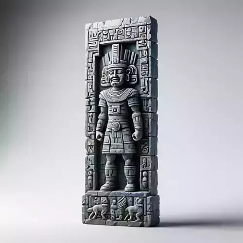 This highly detailed 3D model depicts an ancient Mayan warrior carved into a stone stele. Ideal for game development, especially for creating immersive historical or fantasy environments, it's also suitable for architectural visualization, museum exhibits, and educational projects. The model is available in multiple formats including GLB, OBJ, FBX, and STL, catering to various software needs. Optimized for both real-time applications and high-quality renders, the model features clean topology and detailed textures. The UVs are unwrapped, ensuring seamless texture application and modification. The intricate carvings on the stele, the warrior's attire, and headdress are meticulously sculpted, providing a rich visual experience. The model is ready for integration into your projects, whether it be a game level, a cinematic scene, or a 3D printed artifact. Its versatile nature makes it a valuable asset for a range of creative projects. It is suitable for 3D printing, allowing you to bring this ancient relic to life in the physical world. The model's PBR textures enhance realism and compatibility with modern rendering engines, providing accurate light interaction and material representation.