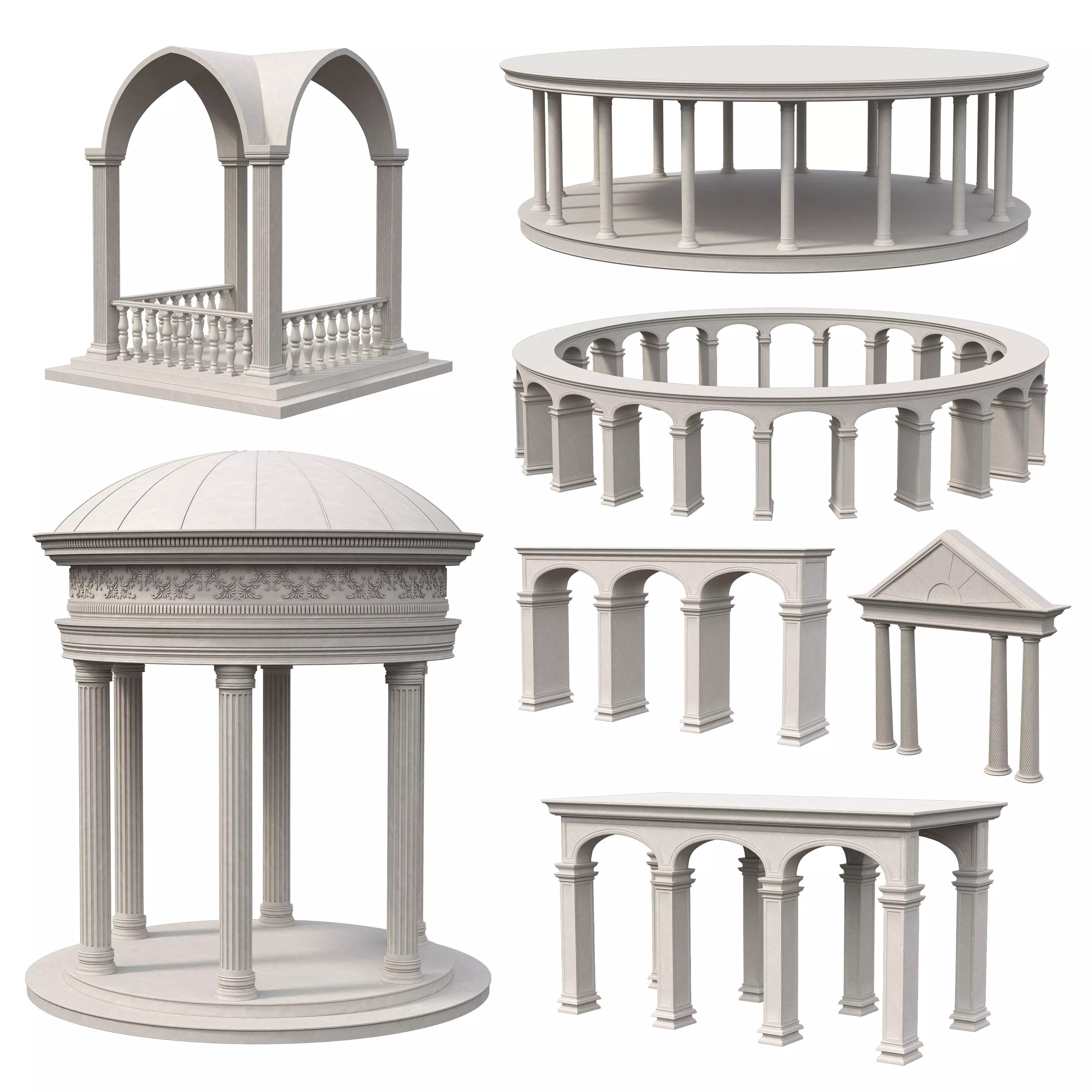 Collection of Architectural Exterior Elements with classic designThis set includes Pavilion, Pediment, Rotunda, Arcade And Colonnade.