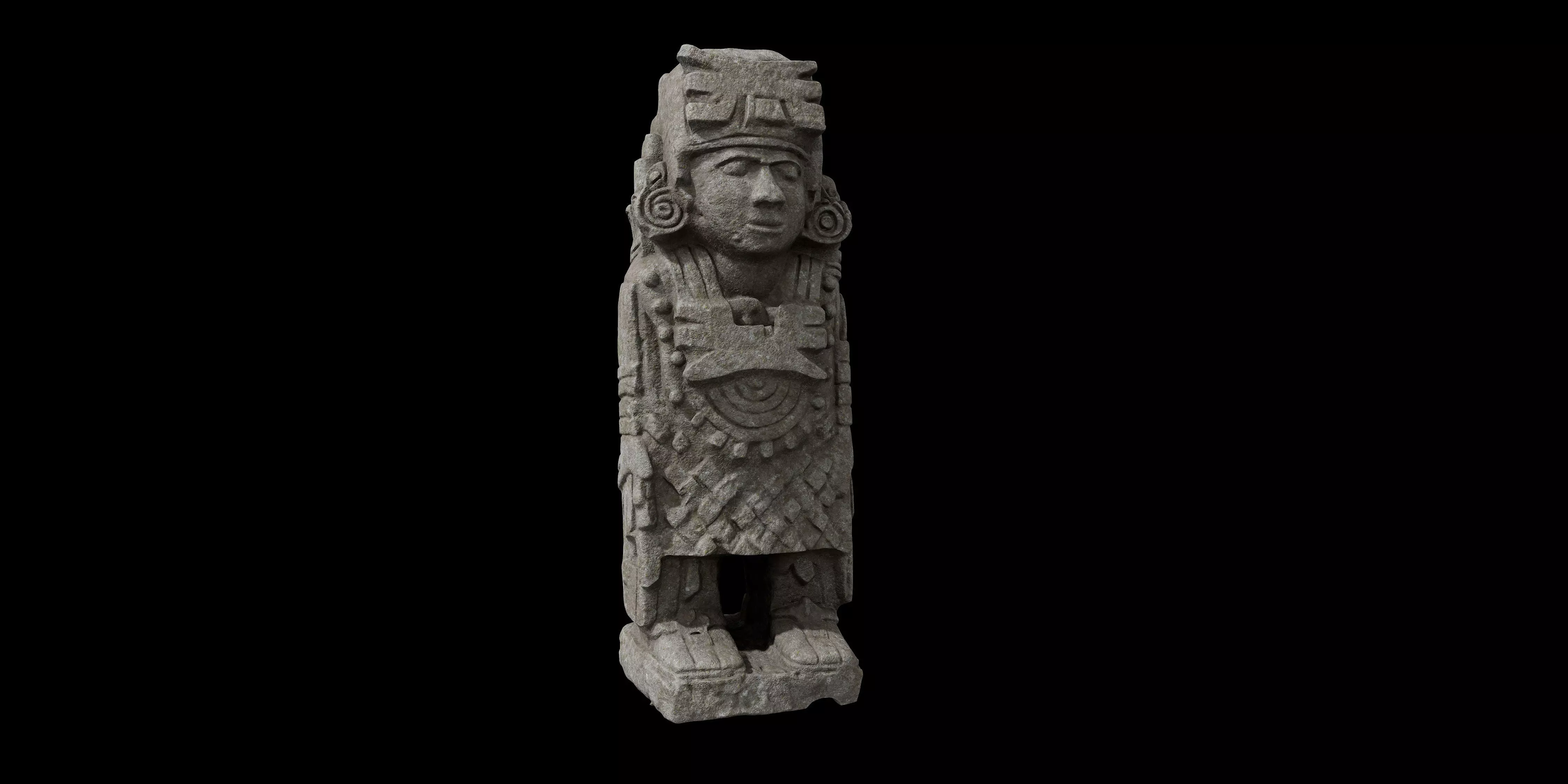 This highly detailed Aztec-style standing statue features refined carved patterns and a clean vertical silhouette, making it an ideal asset for Mesoamerican environments, temple scenes, and archaeological setups.