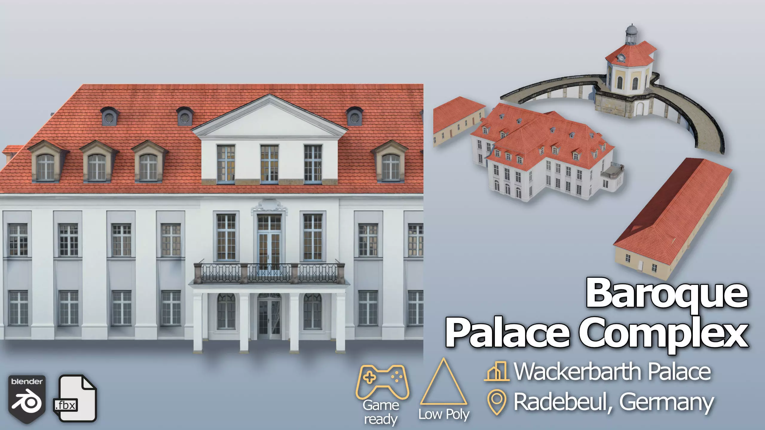 This pack includes a model of the historic Wackerbarth Palace from Radebeul, Germany. The model has streamlined textures and optimized geometry, ideal for use in games, virtual reality, historical simulations, or fantasy environments.