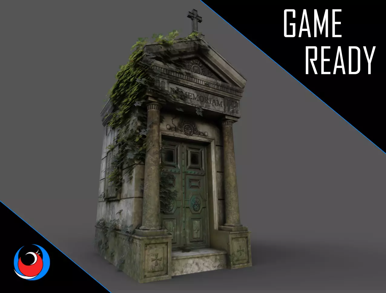 • 1 metal-roughness PBR material for Mausoleum and 1 PBR material for ivy leaves.