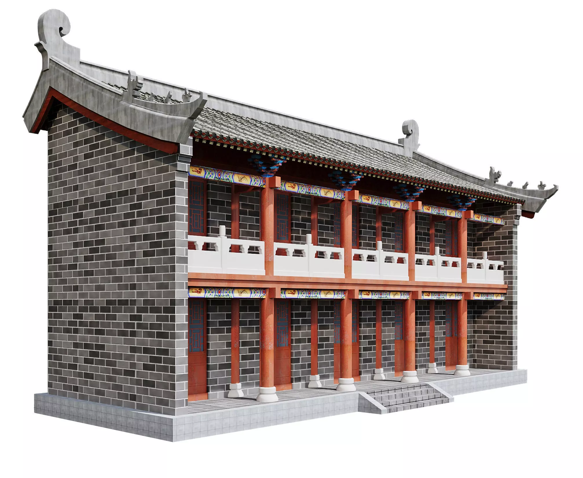 Japan Two-Storey Hall - Grey-Brick Historic Pavilion 3D model