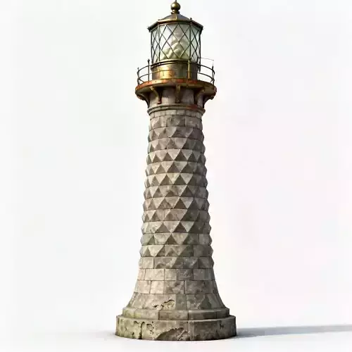 Files Included: FBX, GLB, OBJ, STL, ZIP (Textures). Quick Tip: The Diamond Glass at the top creates beautiful shadows. Place a Point Light inside the lantern room so the lattice frame casts a crisscross shadow pattern on the surrounding fog or water.