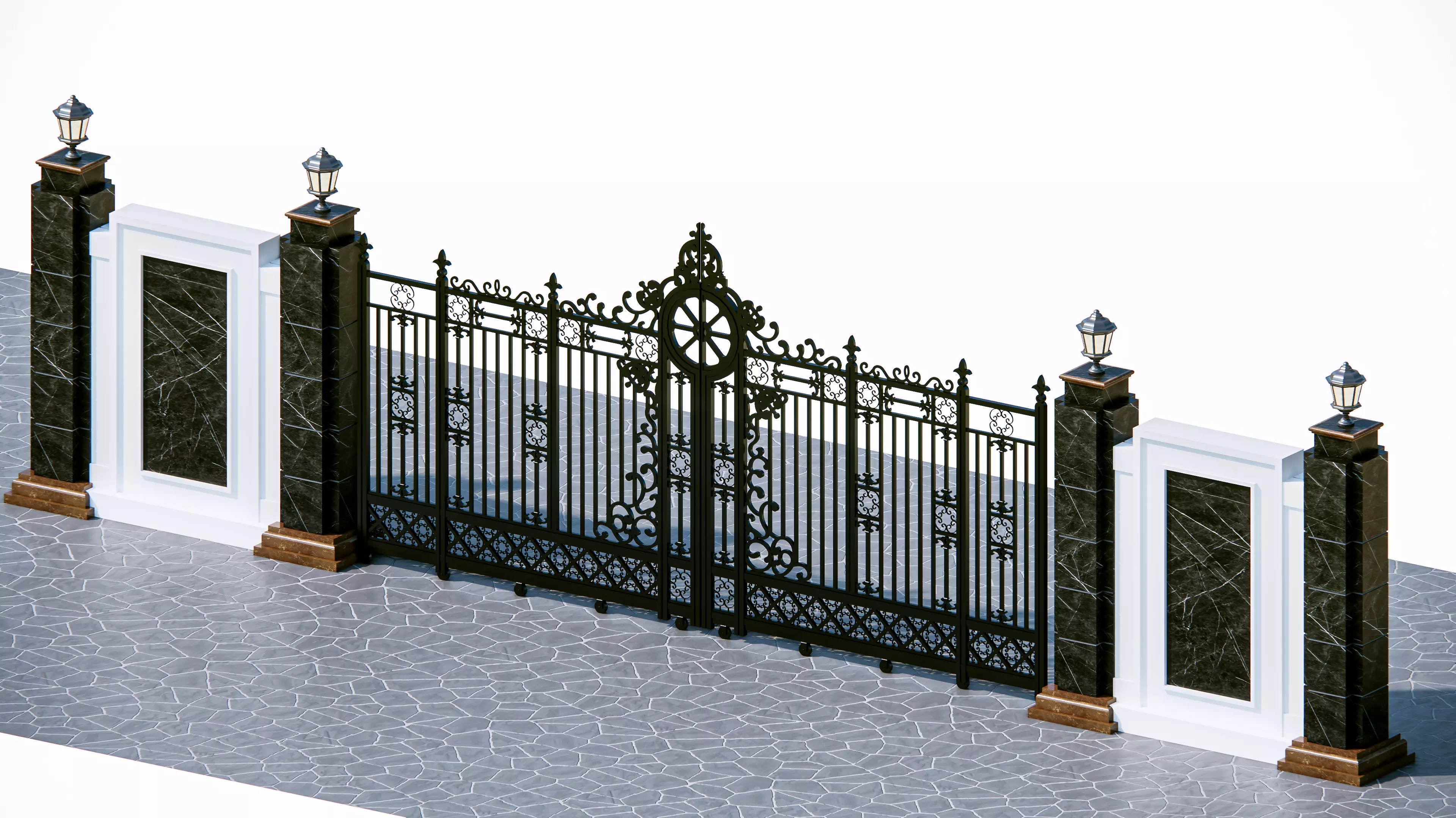 Elevate your architectural projects with this beautifully crafted classical gate 3D model, featuring intricate wrought iron detailing and robust marble-clad pillars. Designed to convey elegance and security, this model is perfect for high-end residential entrances, luxury estates, historical restorations, or premium architectural visualizations.