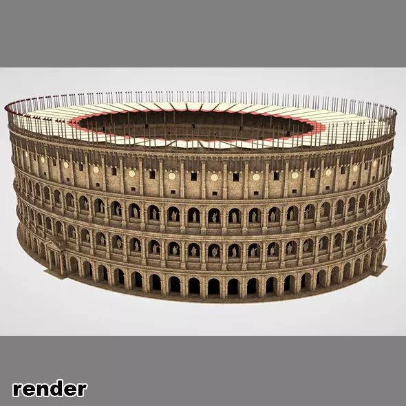 Coliseum - low poly model for video games and applications - 103070 tris.The model is Cinema4D native, it is composed of three objects, one mesh for the exterior, one for the interior and a plane for the sand floor. Textures size: 2048x2048pxl - Diffuse, Glossiness, Height, Metallic, Normal, Roughness, Specular, Alpha.