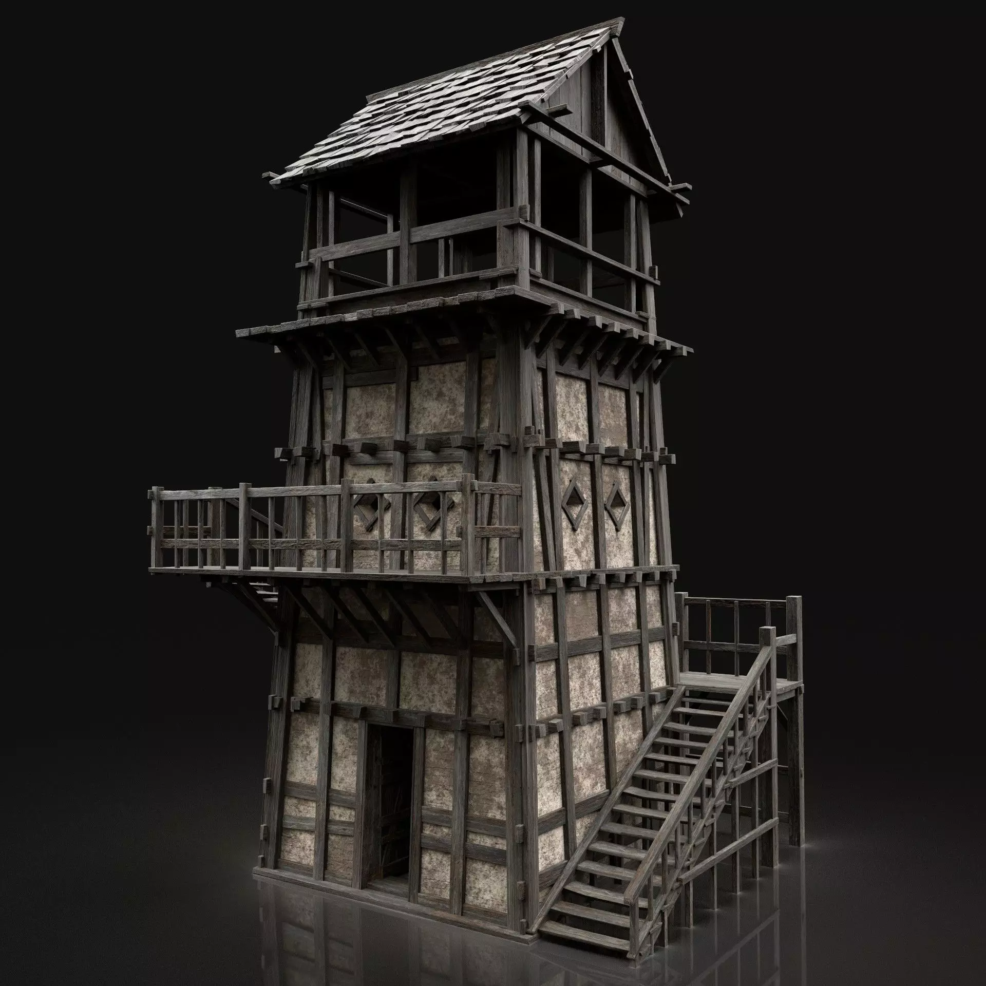 Uses Physically Based Rendering materials, which give the model realistic lighting and surface properties.