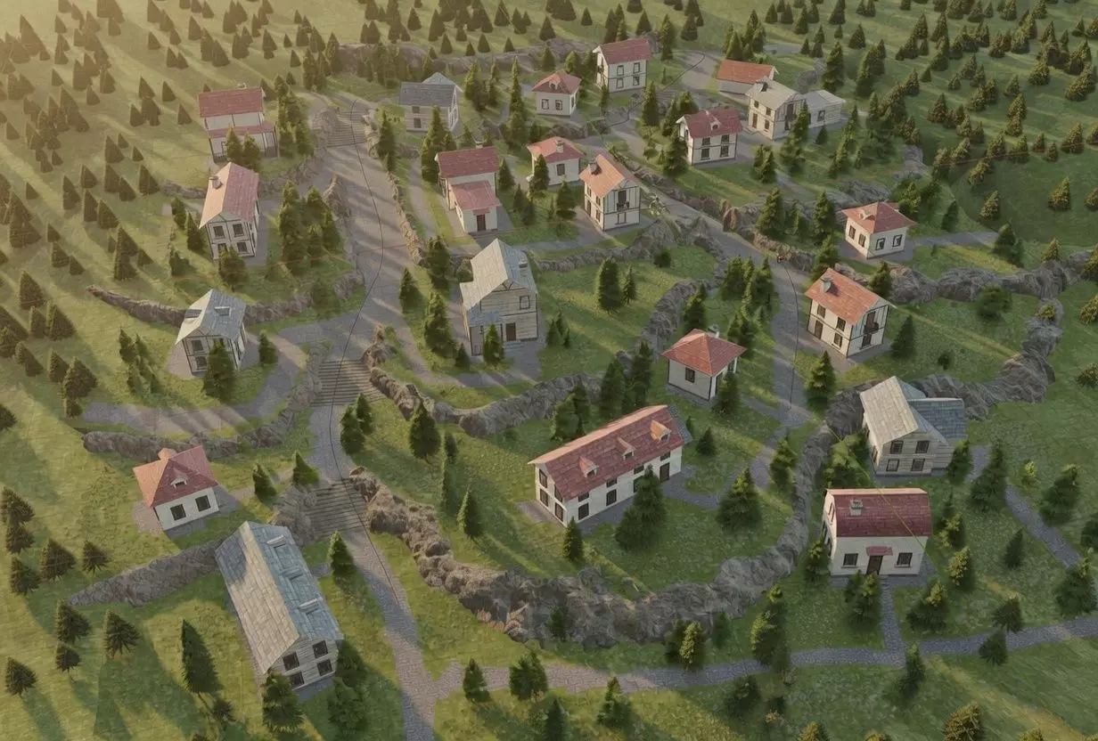 Discover a secret ancient village nestled deep within lush green hills and dense forest. This semi-realistic environment captures the timeless charm of an old-world hamlet hidden from the outside world - perfect for cozy storytelling, immersive adventures, and atmospheric scenes.