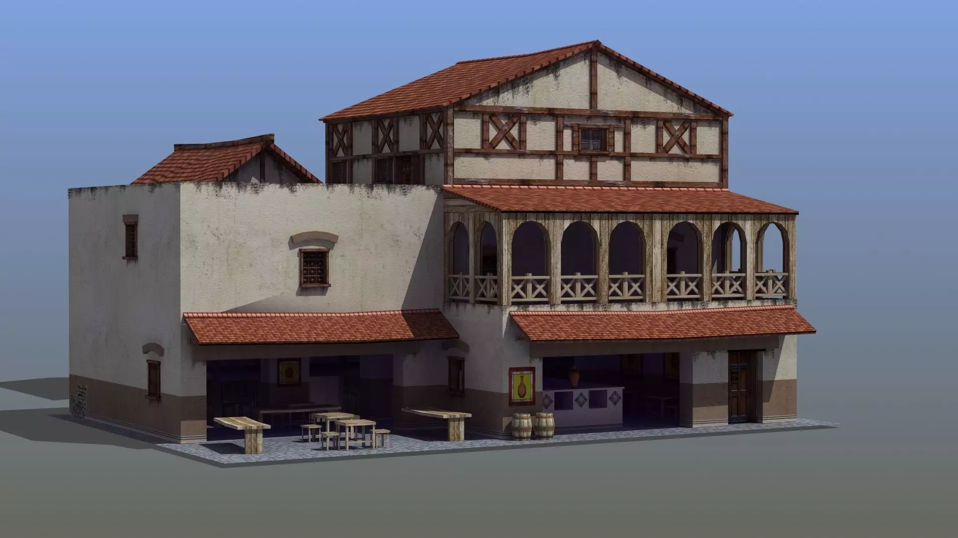 Tavern or Inn, for fantasy or ancient settings. Roman, Greek, Viking, RPG. Great multipurpose 3D model (ideal for offline rendering or real time uses such as games or simulation).