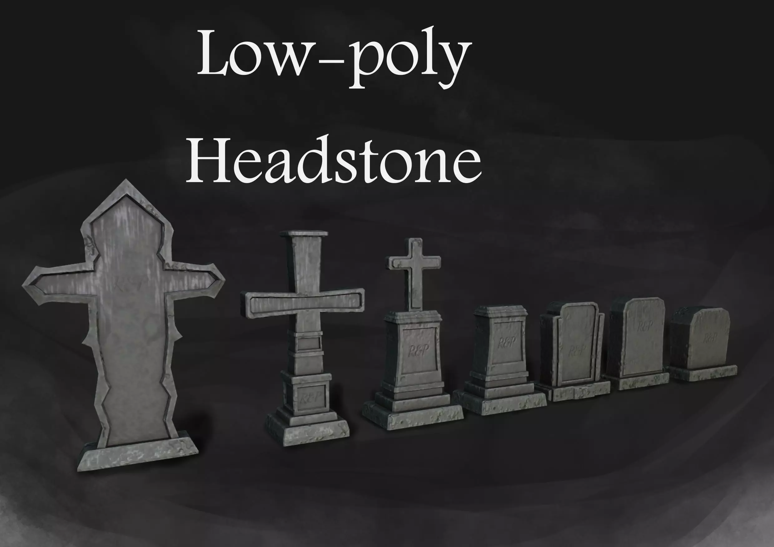 HeadstoneThe set contains 7 models.Models are ready to be imported into the game engine, suitable for casual games with simple graphics, each model has 3 levels of detail, which will help in optimizing your project.Also for the model there are textures with a resolution of 1024, 512, 256px.All textures are in the archive Headstone_Texture.rarThe models are made in Blender, but are available in the following formats:blendFBXMLTOBJSLTThe files are in the file folder.