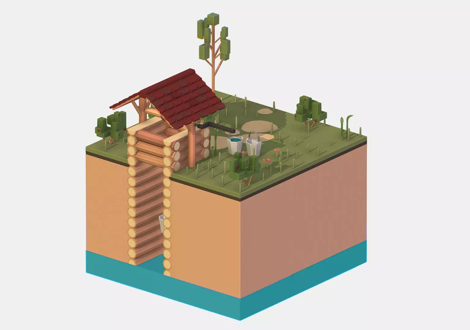 Isometric European Village Well Draw-Well Low-poly 3D model