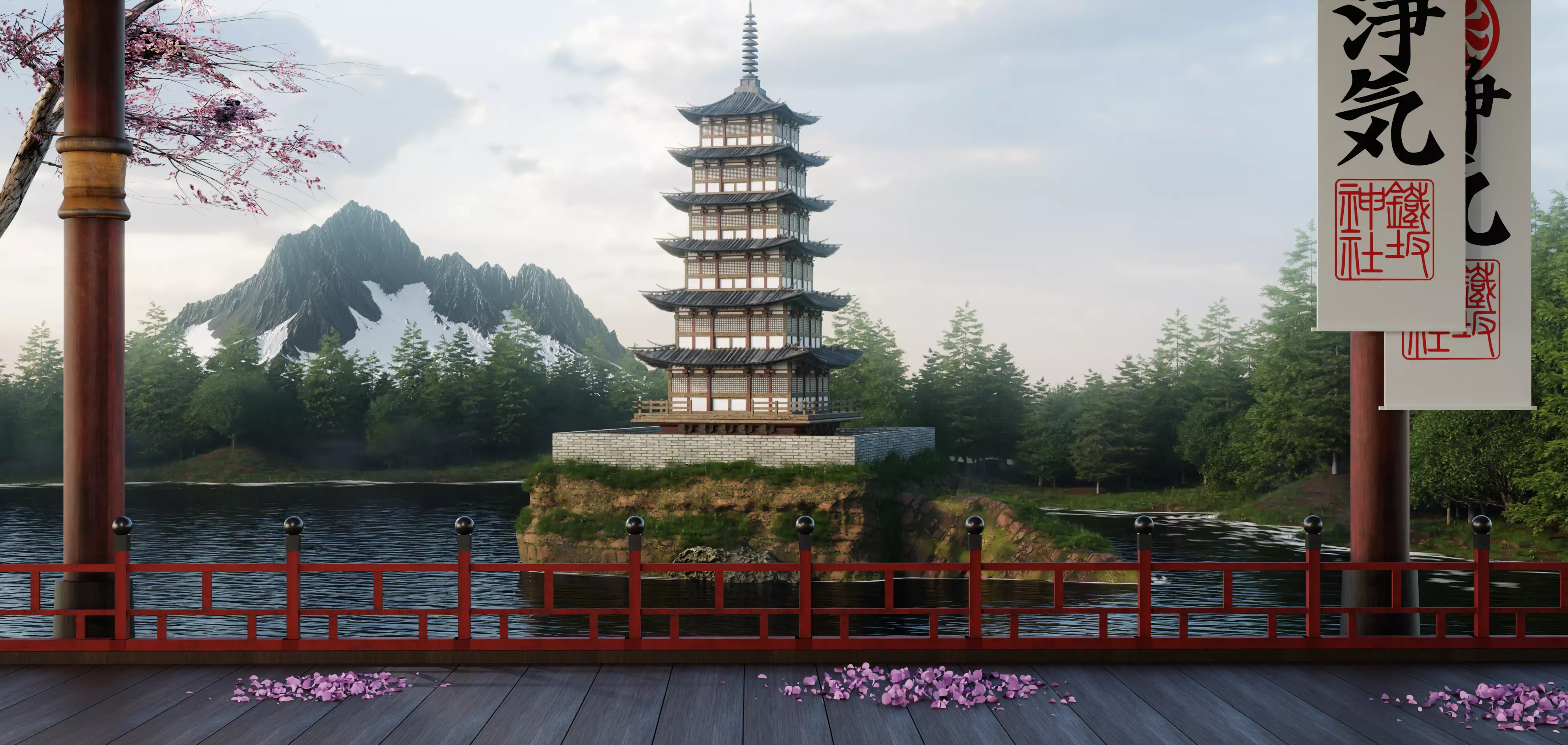 I modeled a Japanese temple with Blender and added its textures. I hope it's useful.This is a high poly model, but since the objects are not joined, you have the option to edit them.You can use this with both EEVEE and Cycles.For example, I used it in one of my works and uploaded a photo of it, and you can see that it looks beautiful in landscapes.