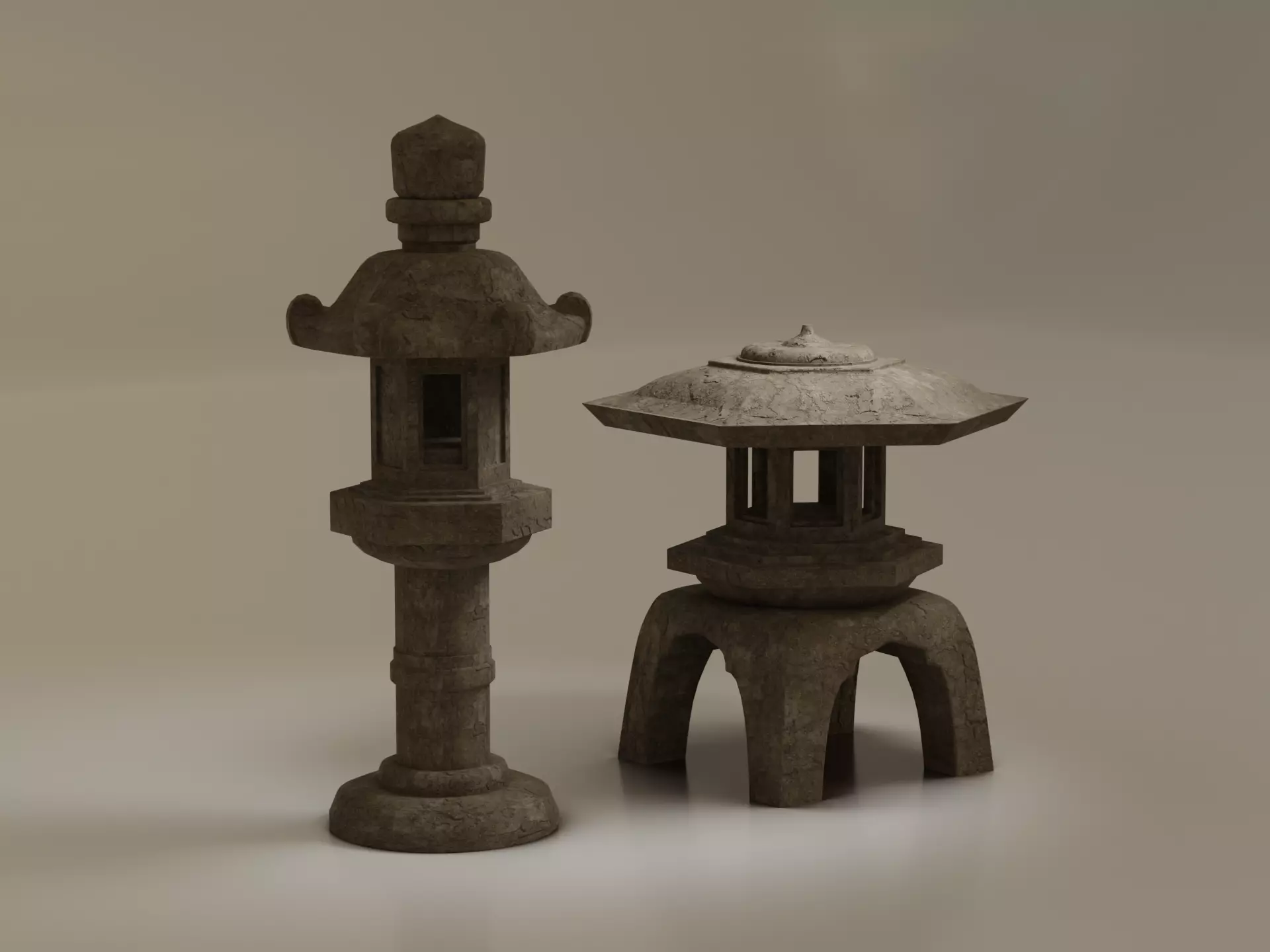 Low-Poly Tourou stone pagoda Low-poly 3D model