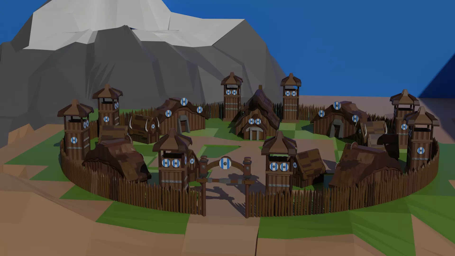 A low poly 3d viking town set.