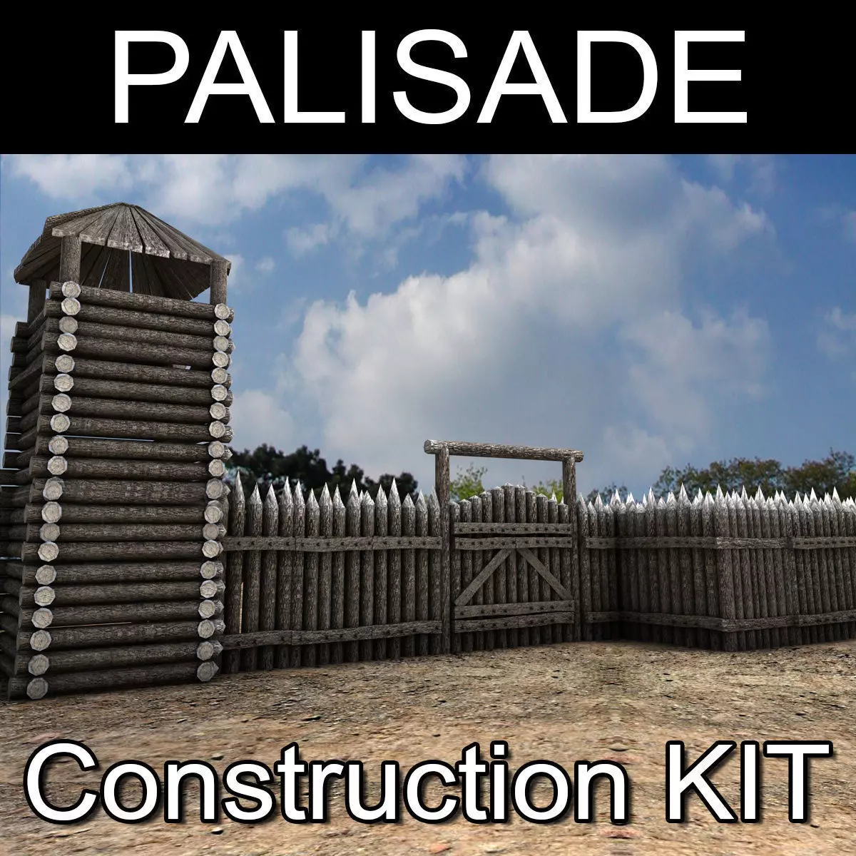 3d model of a wooden palisade contruction kit. Perfect for games, scenes or renders. You can use it to build a variety of locations.