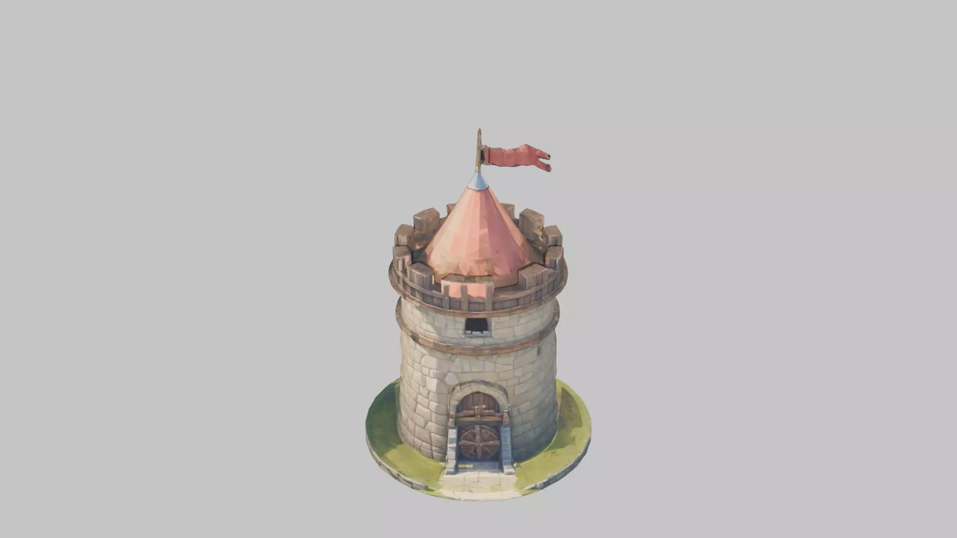 Lowpoly Stylized medieval watch tower Low-poly 3D model