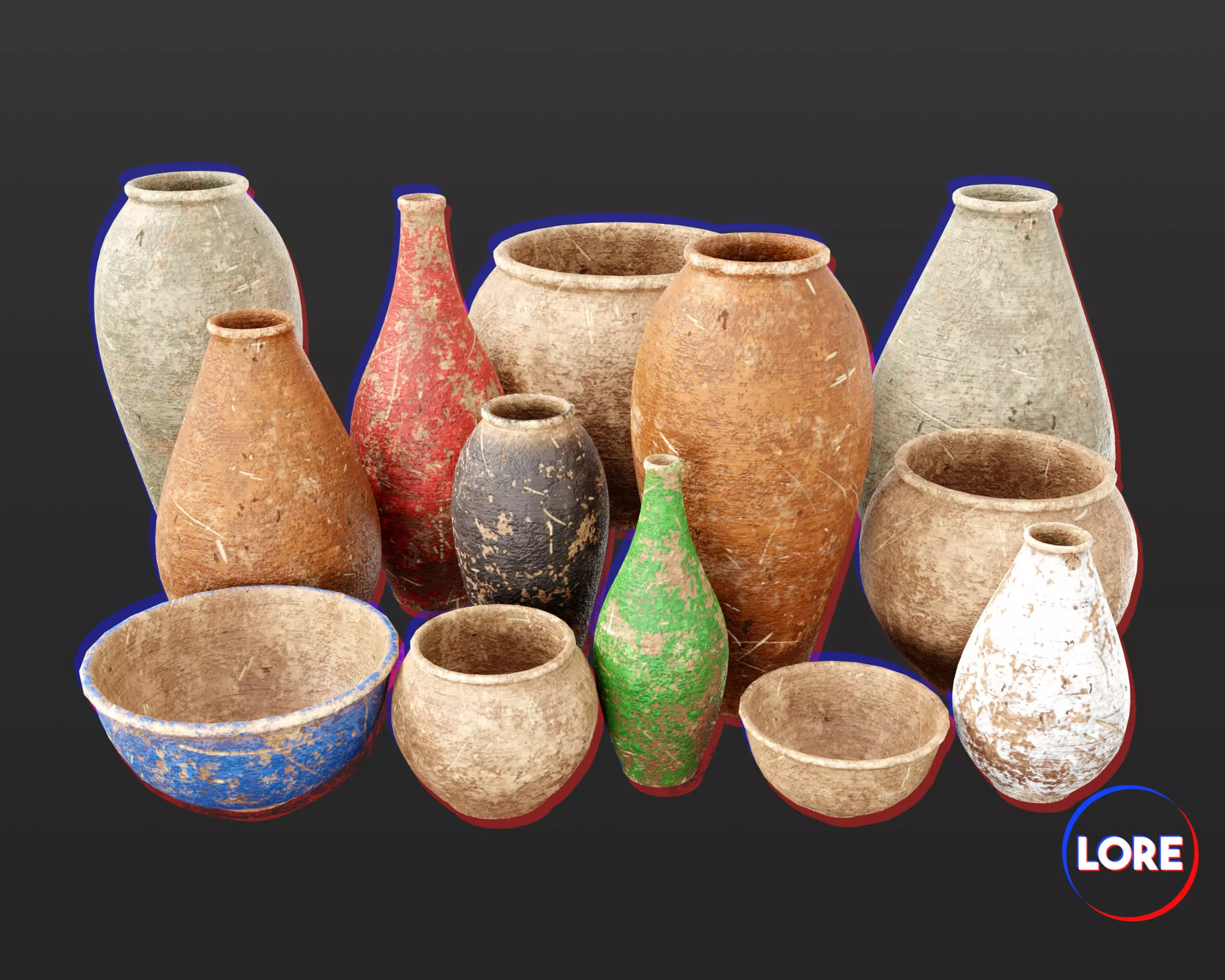 • 10 Models are included in this variety pack of clay pots and vases. These models feature rough clay surfaces with minor imperfections. These models can be used in different settings including Medieval, fantasy, frontier, western, etc. They can be used as background props in a tavern, outdoor spaces, or as storage on a wagon.