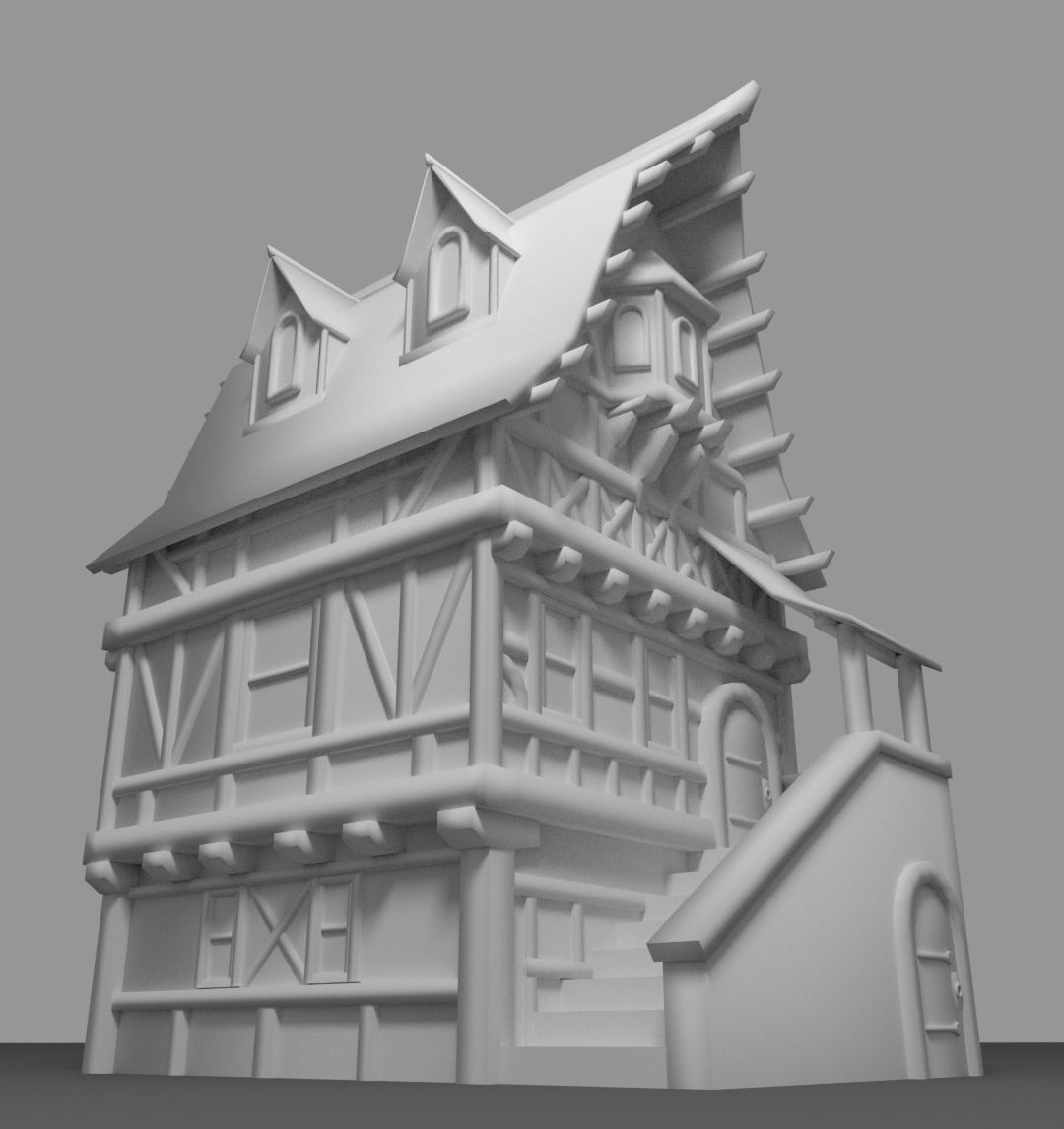 Low poly model of a medieval house.