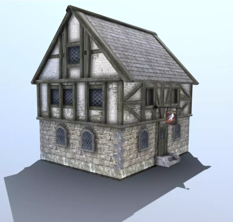 Medieval Tudor Tavern Low-poly 3D model