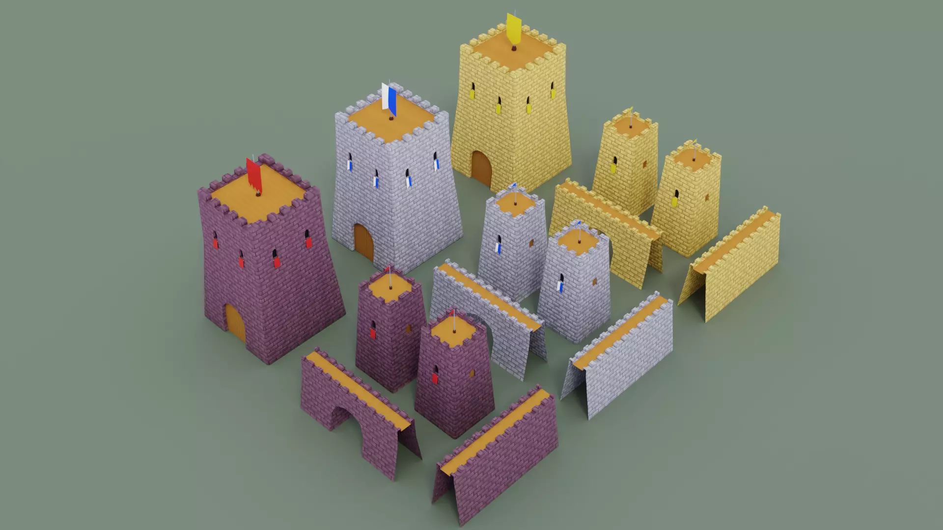 This pack of modular walls contains three sets of 5 interconnecting castle wall segments.