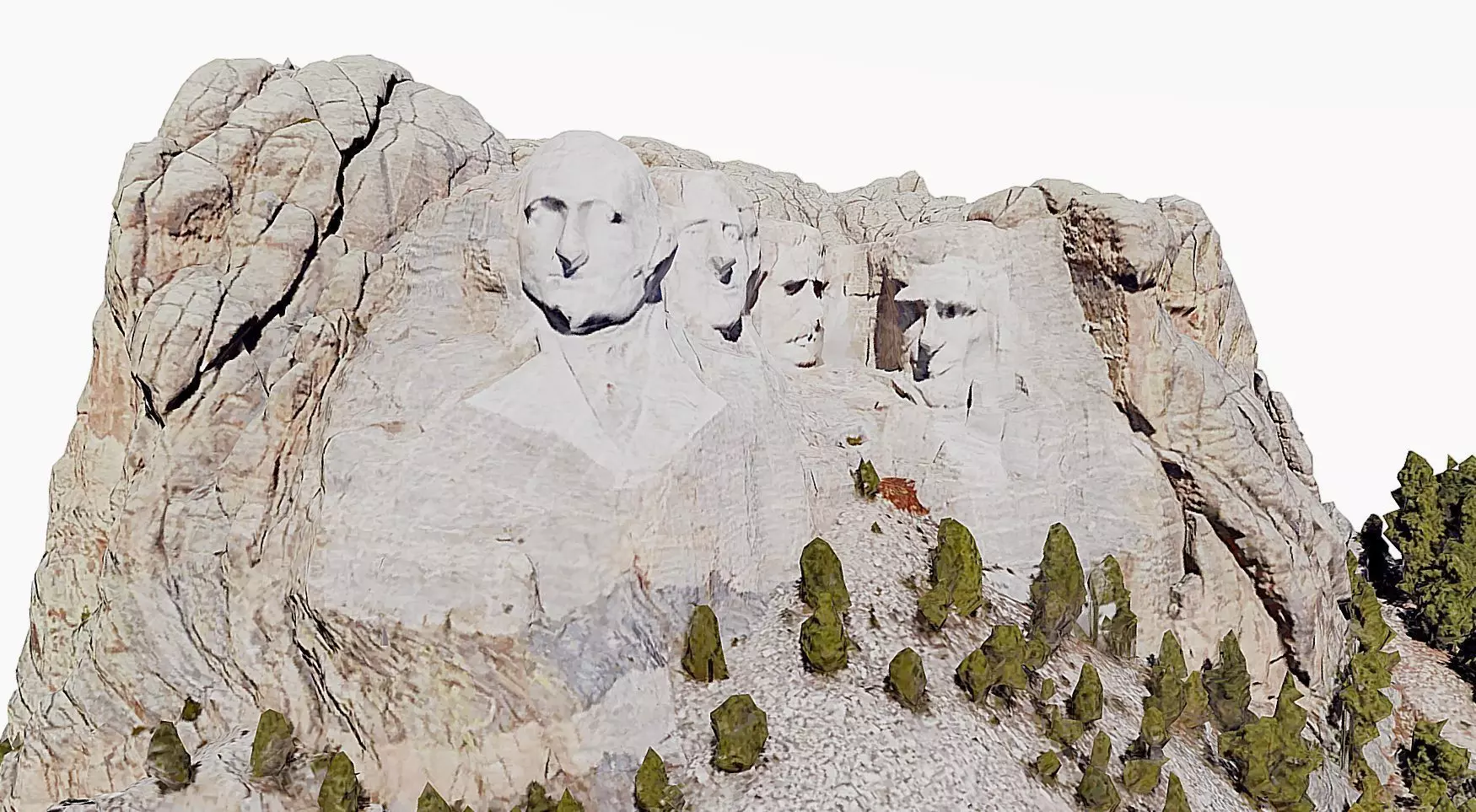 Mount Rushmore National Memorial is centered on a colossal sculpture carved into the granite face of Mount Rushmore (Lakota: Tȟuŋkášila Šákpe, or Six Grandfathers[2]) in the Black Hills near Keystone, South Dakota. Sculptor Gutzon Borglum created the sculpture's design and oversaw the project's execution from 1927 to 1941 with the help of his son, Lincoln Borglum.[3][4] The sculpture features the 60-foot (18 m) heads of Presidents George Washington (1732–1799), Thomas Jefferson (1743–1826), Theodore Roosevelt (1858–1919) and Abraham Lincoln (1809–1865), as recommended by Borglum.[5] The four presidents were chosen to represent the nation's birth, growth, development and preservation, respectively.[6] The memorial park covers 1,278 acres (2.00 sq mi; 5.17 km2)[7] and the actual mountain has an elevation of 5,725 feet (1,745 m) above sea level.