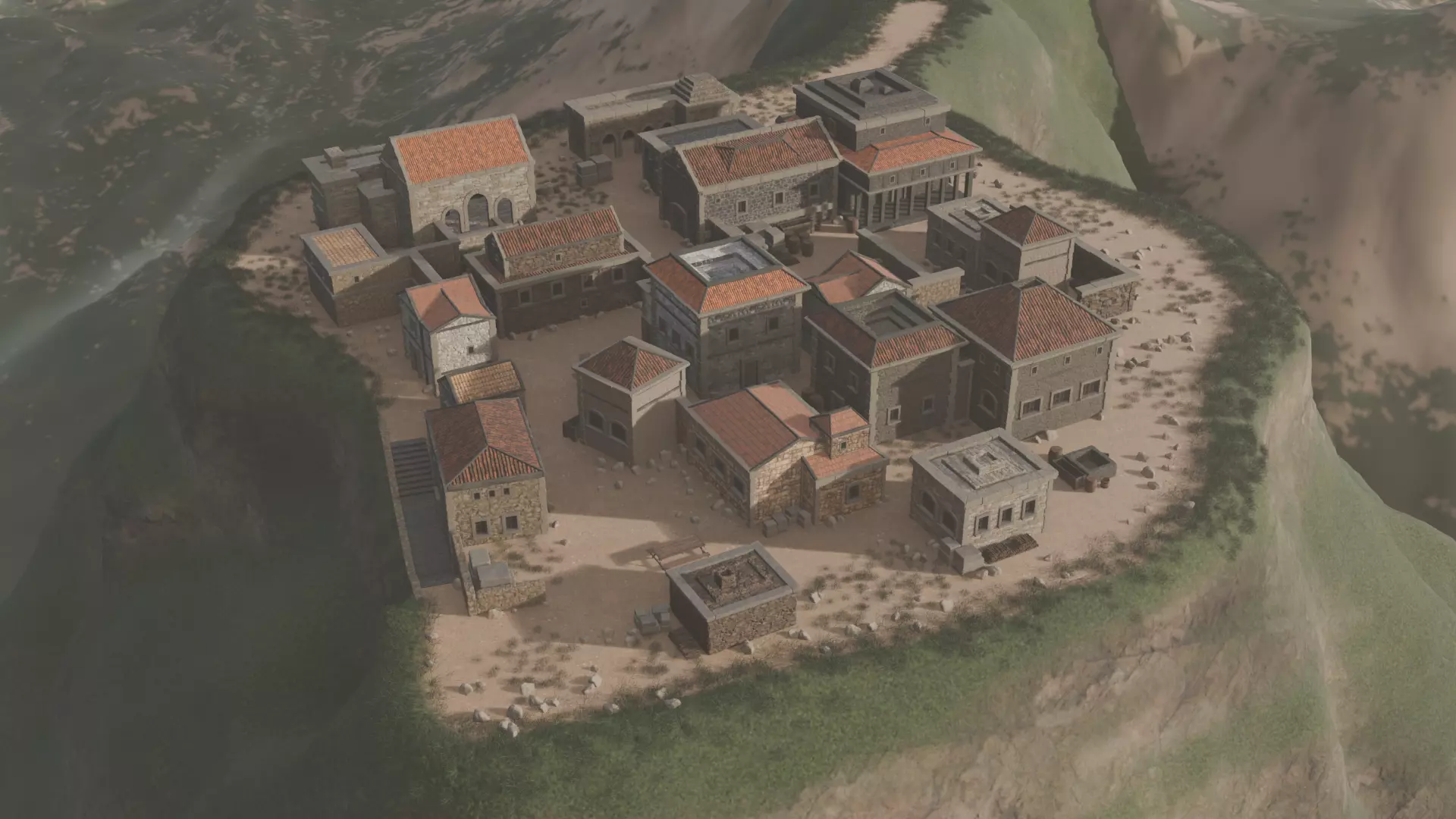 Filled with Stone houses, Village courtyard, Mountain hillside, Dirt paths, the environment rewards closer inspection with touches like Tile roofs, Small square windows, Arched walkway, Hilltop settlement layout. Well-suited for historical game levels, heritage visualization projects, and synthetic AI datasets covering pre-modern environments.