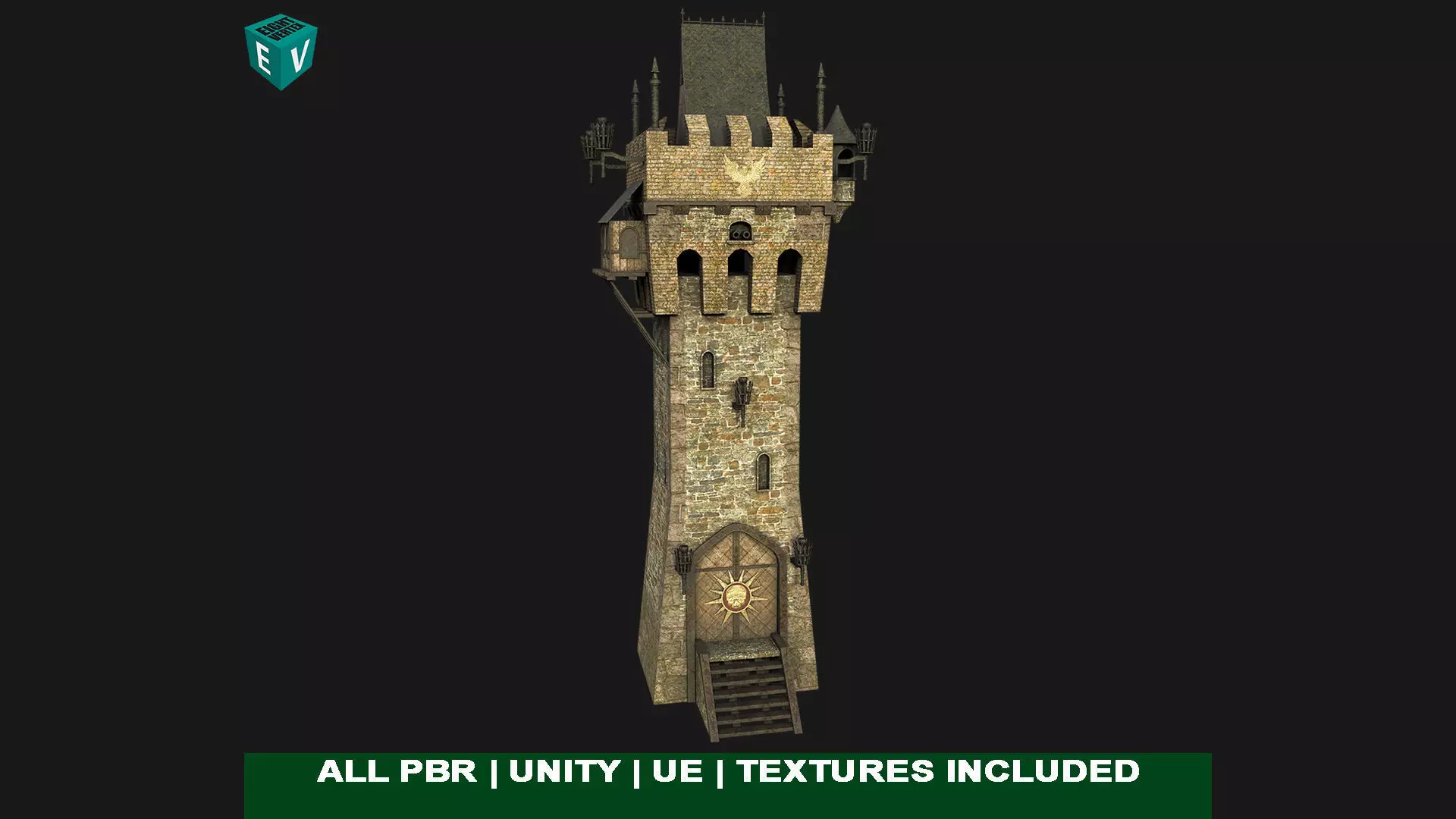 Old Castle Watch Tower 01 All PBR Unity UE Textures Included Low-poly 3D model