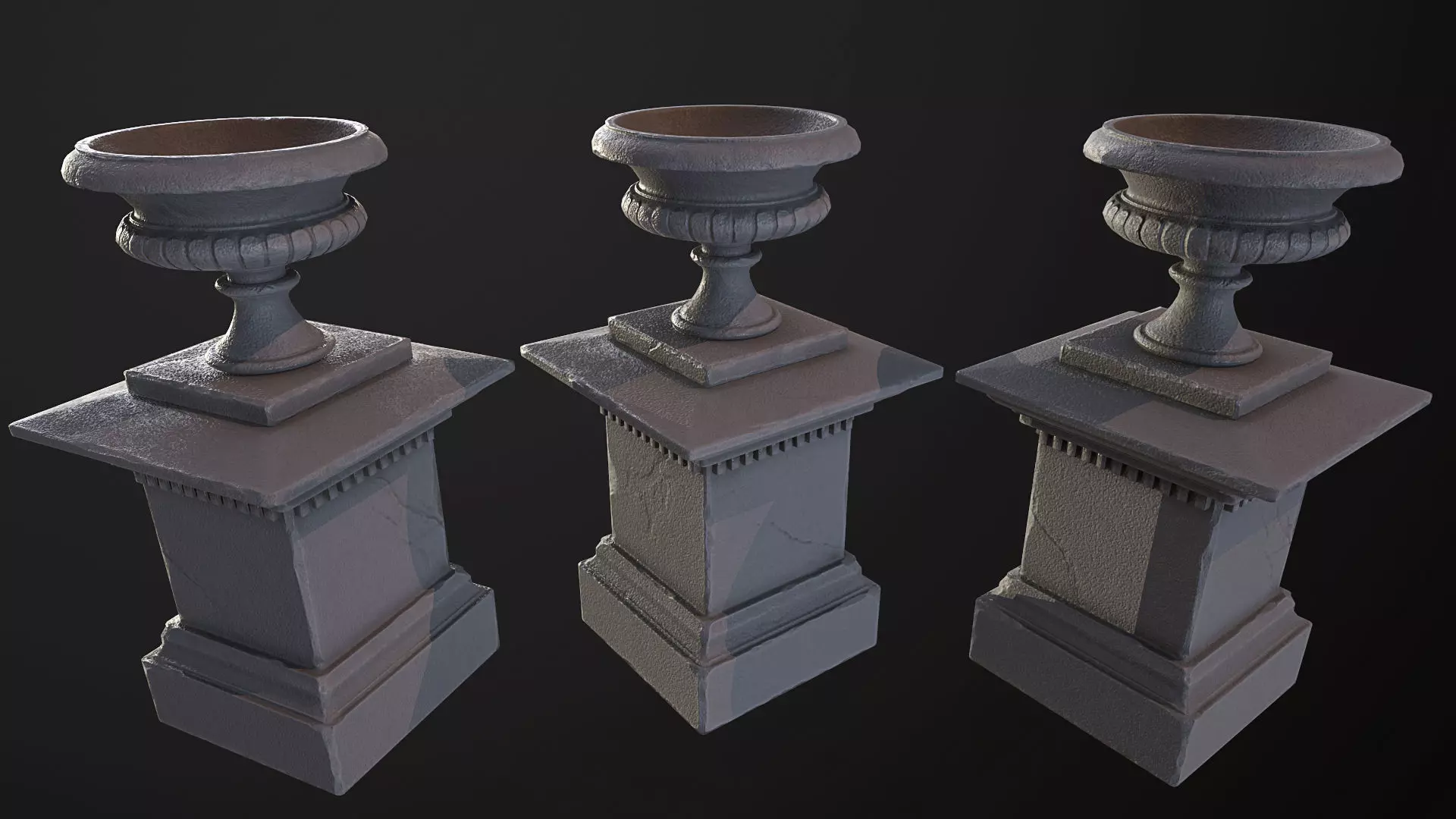 Old PBR urn, 2k textures for color, ambient occlusion, normal, rougness. Also Included a packed texture ROM, Red channel contains roughness, Green ambient occlusion and Blue Metalic.It is optimized and can be used in games, 6318 Triangles. Preview renders in marmoset.
