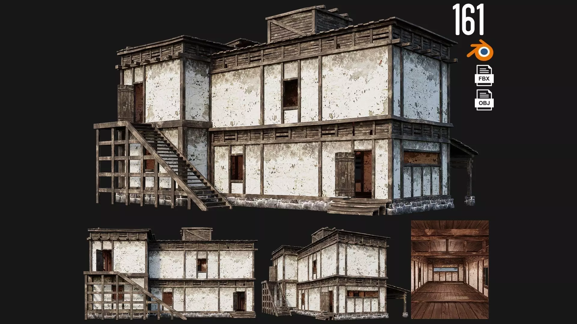 Old House Building 4K Textures GameReady 161 Low-poly 3D model