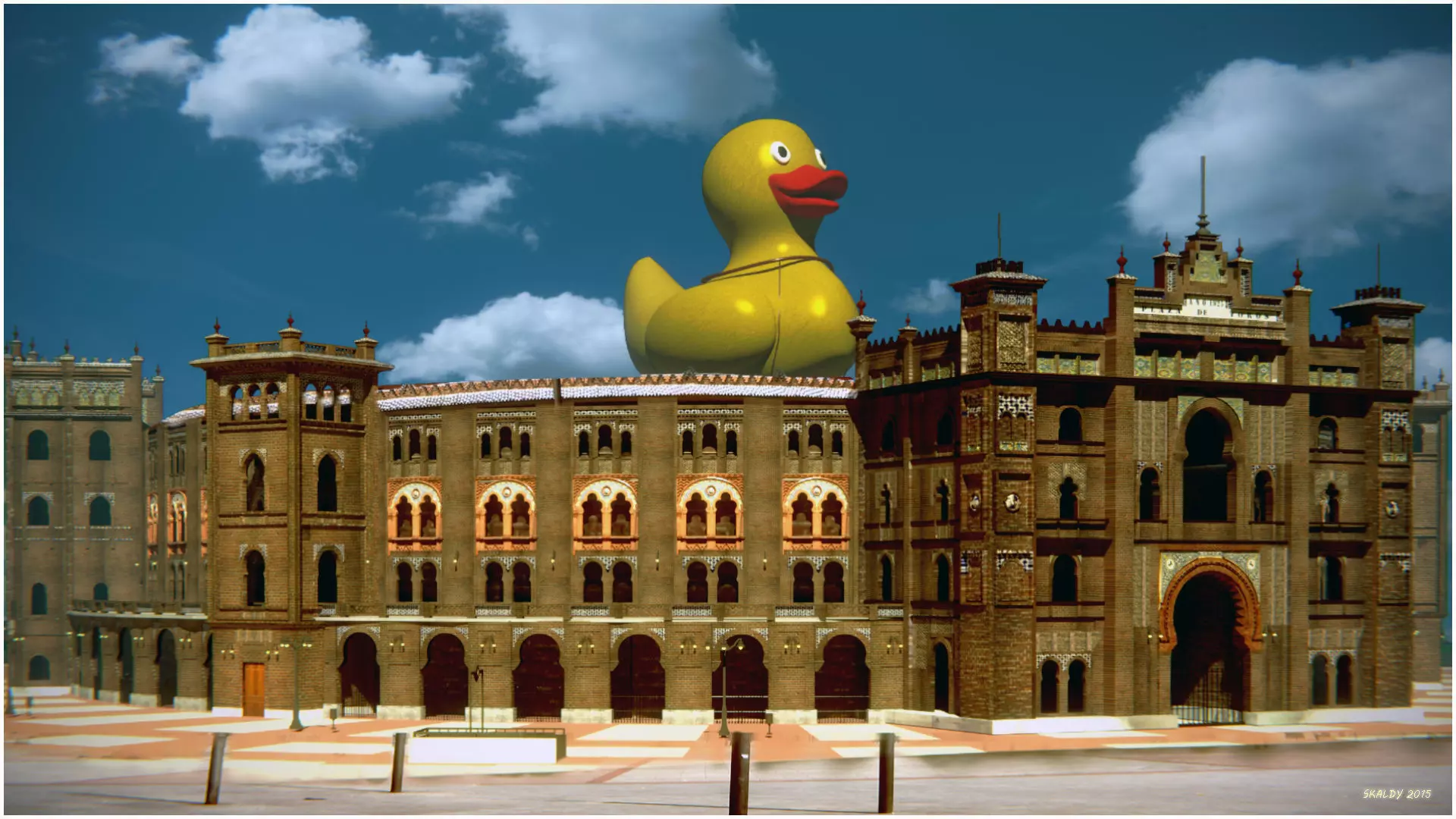 José Espelius is the author of the Las Ventas bullring, designed in neo-Mudejar style and started in 1919. At his death, ten years later, Manuel Muñoz Monasterio would continue the works until its conclusion in 1931.It is in neo-Mudejar style in exposed brick on a metal structure. The decoration was made based on ceramic tiles, works by the ceramist Alfonso Romero Mesa, in which the coats of arms of all the Spanish provinces and other ornamental motifs appear.