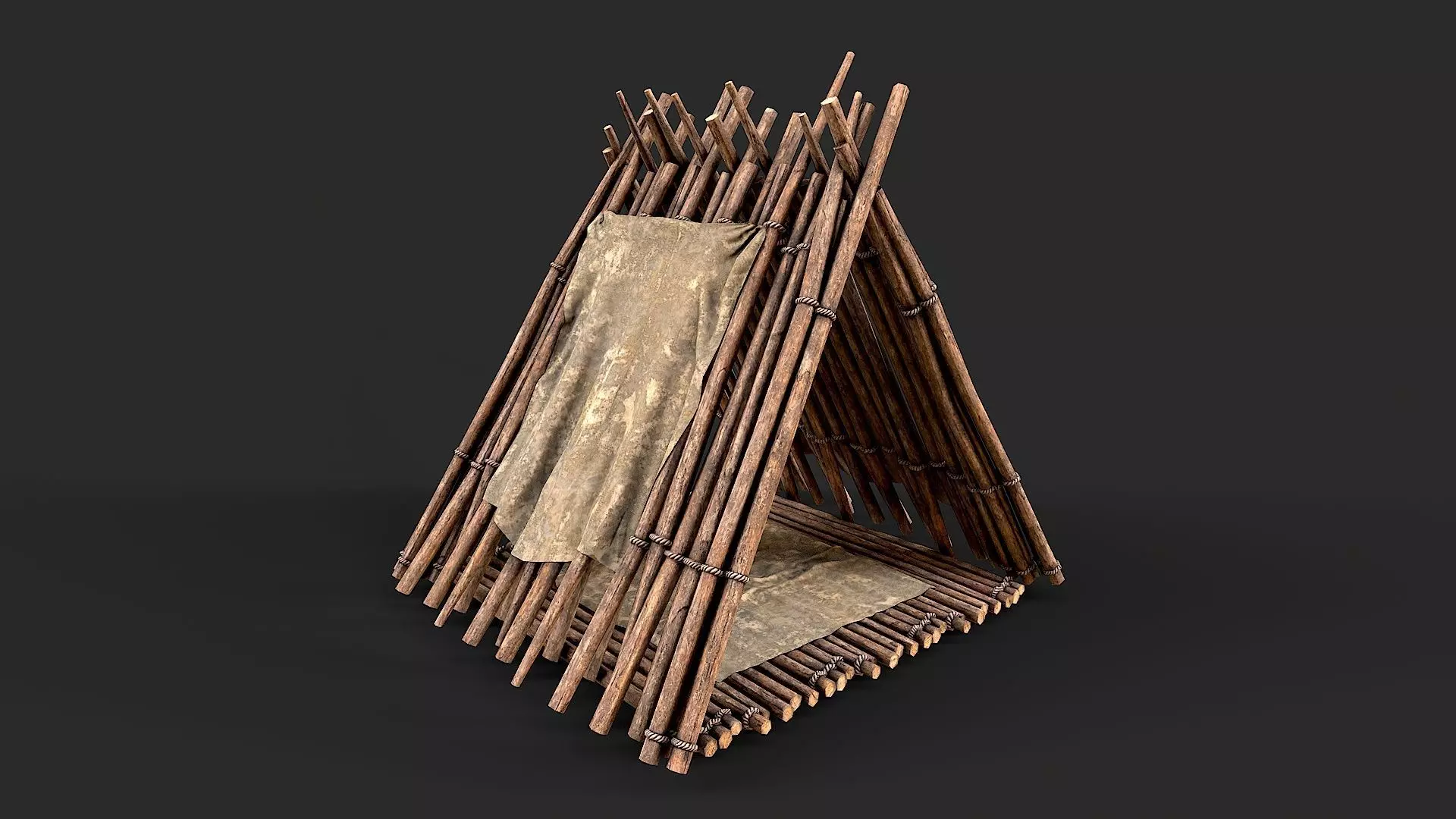 Primitive Wood and Fabric Tent Shelter 1 Low-poly 3D model